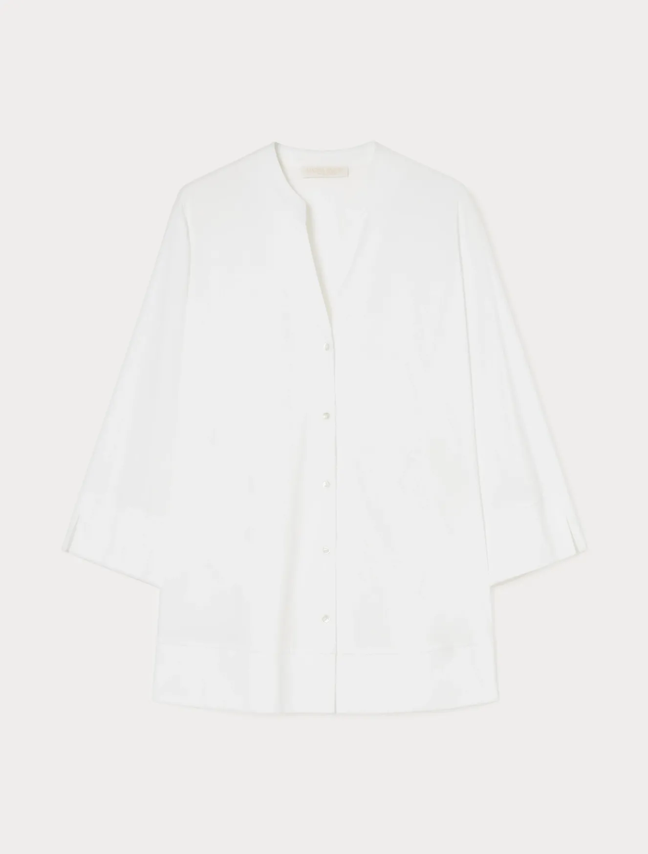 Diese gerade geschnittene Hemdbluse aus Baumwollpopeline und Nylon-Stretch ist die perfekte Basis für eine Vielzahl von Looks. Ein eleganter Joker mit schlichter Eleganz. Dieses Kleidungsstück ist Teil der Kollektion Easy by Marina Rinaldi.