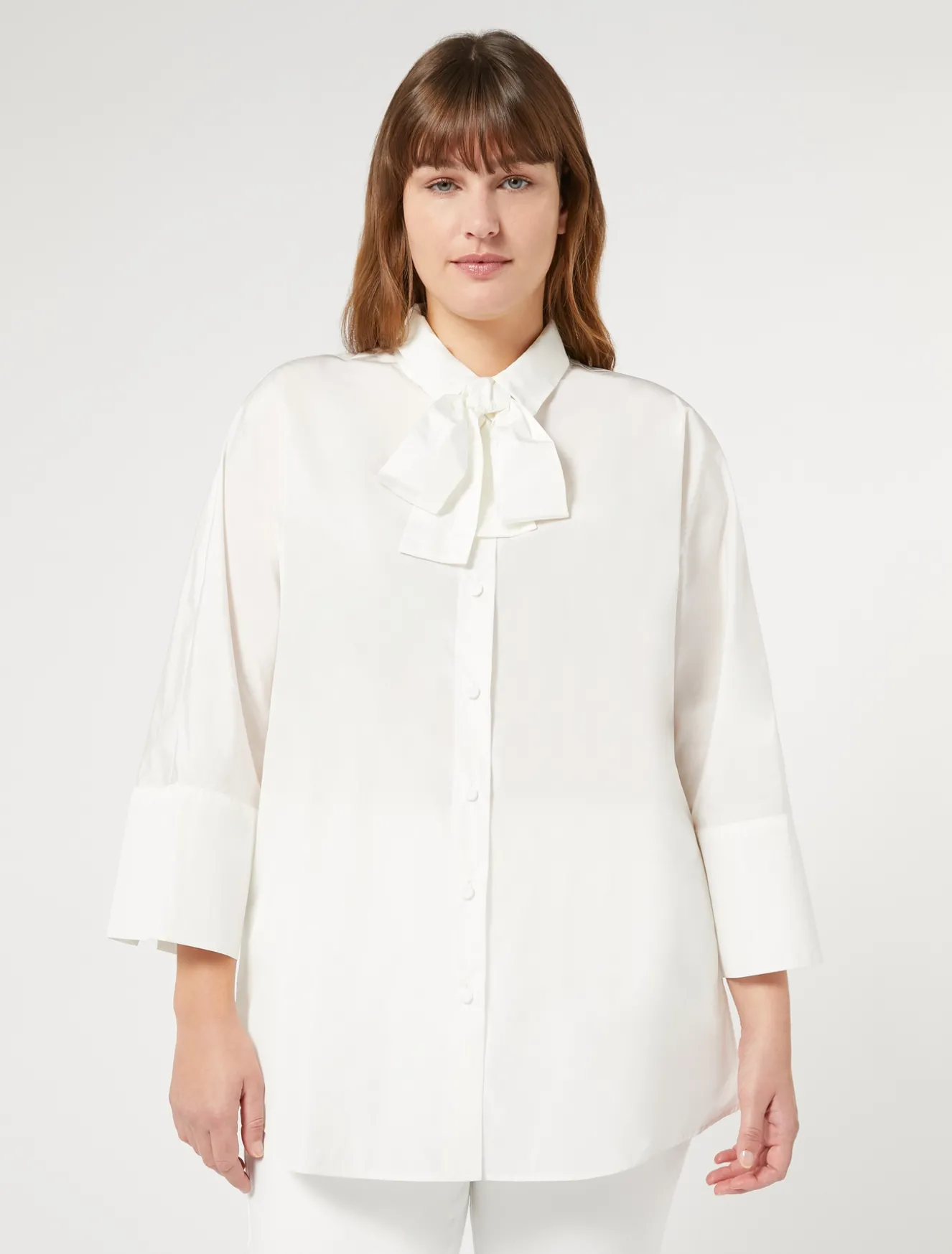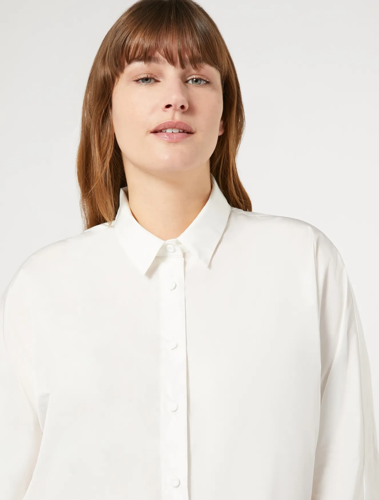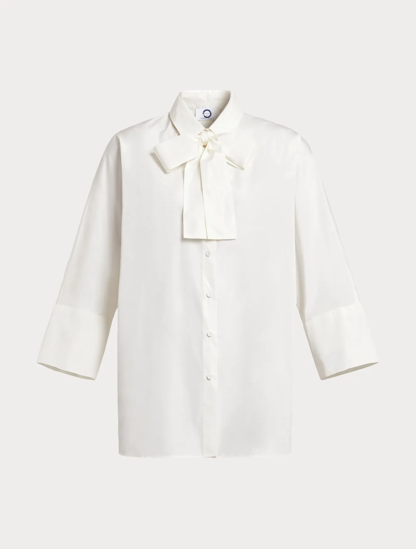 Die Hemdbluse aus Taft besitzt eine weiche, leicht ausgestellte Passform und eine abnehmbarer Schärpe zum Binden am Ausschnitt. Trage dazu am besten die passende Hose.Das Kleidungsstück ist Teil der Kollektion „Voyage“.