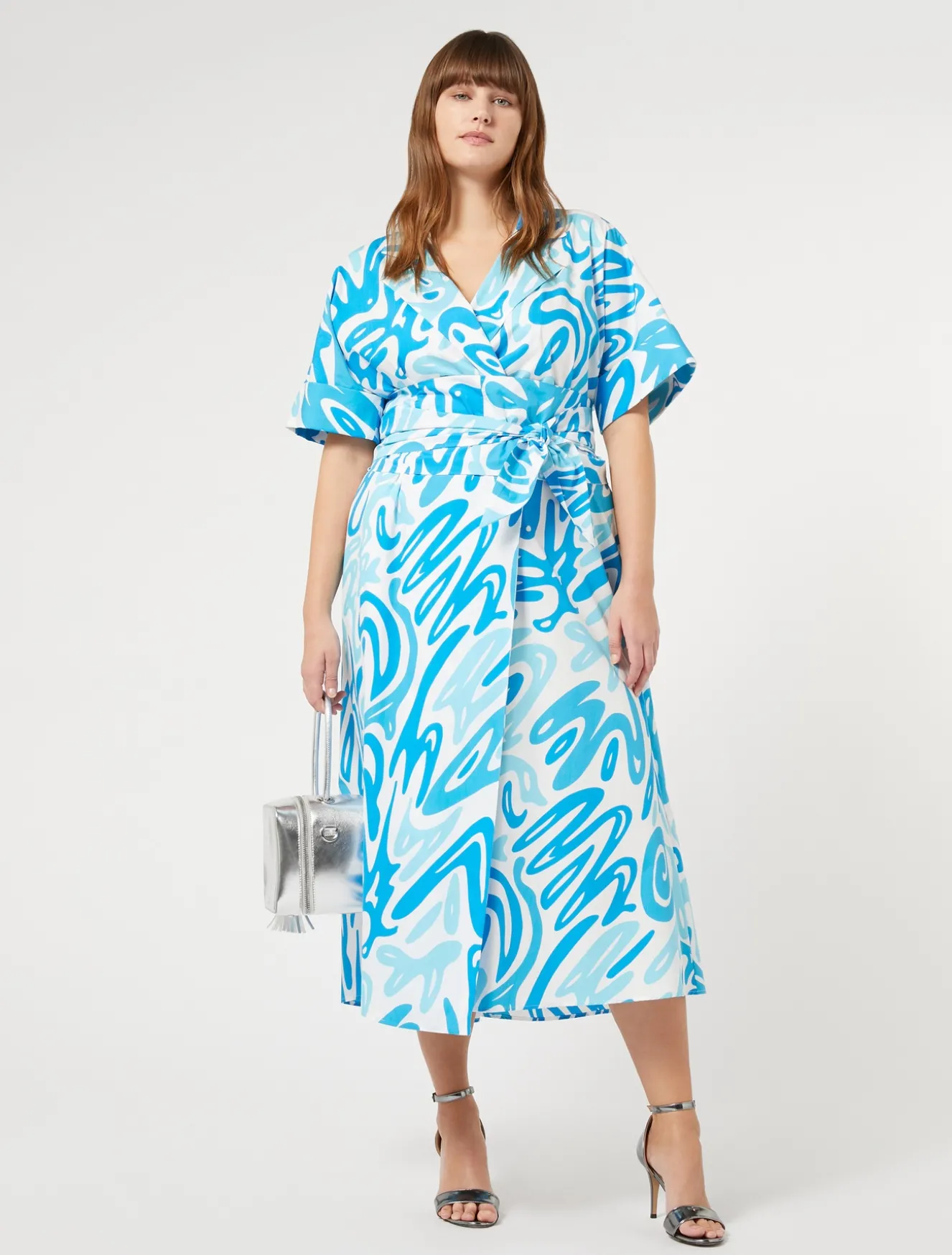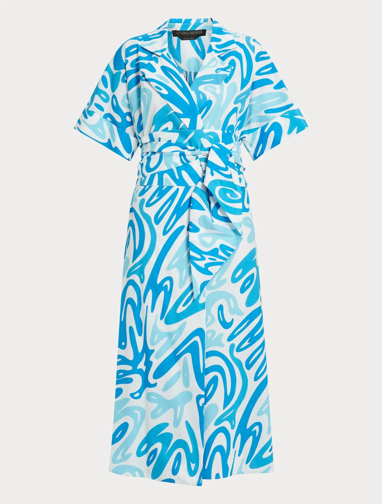 Hemdblusenkleid aus Popeline mit exklusivem Musterprint und gerüschter Rückenpasse. Trage es am besten mit dem dazu passenden Obi-Schärpengürtel.Das Kleidungsstück ist Teil der Sonderkollektion von Sara Battaglia für Marina Rinaldi.