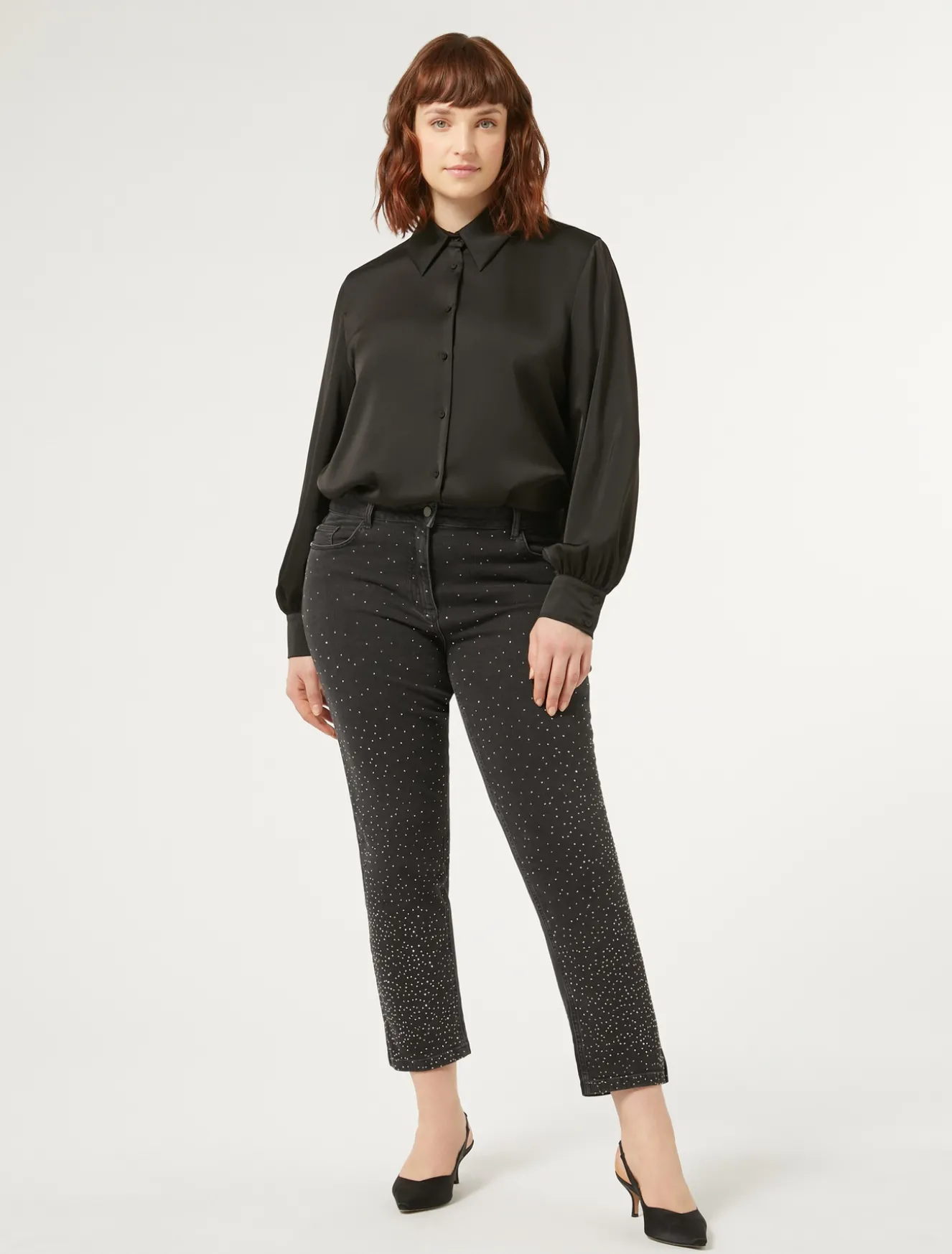 Hose aus Baumwoll-Denim mit Details wie applizierten Thermonieten, die nicht zu übersehen sind. Verschluss vorne.Das Kleidungsstück ist Teil der Kollektion Persona by Marina Rinaldi.– Denim aus Baumwoll-Stretch– Slim-Fit– Reißverschluss und Knopf– Heißklebeapplikationen vorne– Five-Pocket-Design– Gürtelschlaufen an der Taille