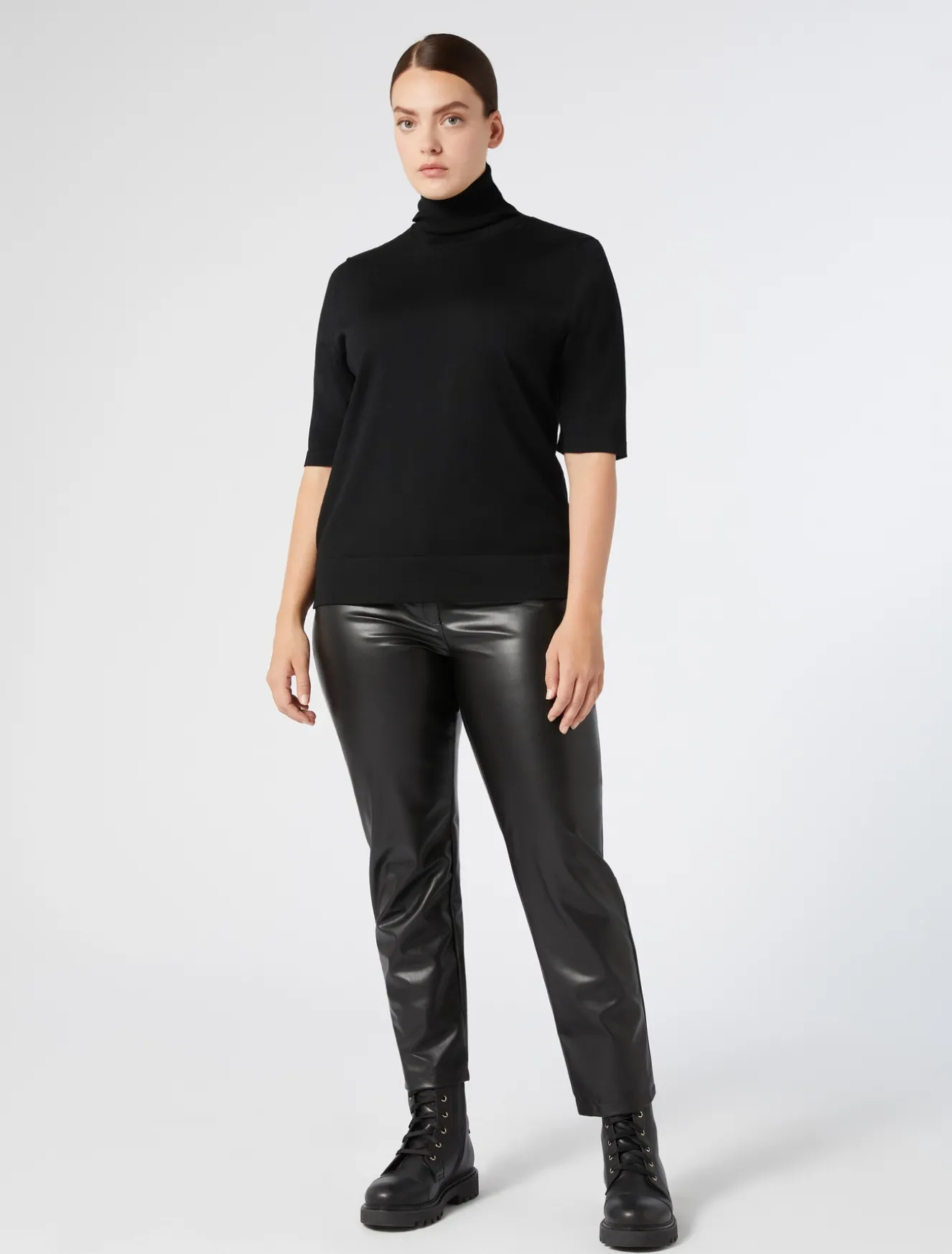 Verleihe deinem Style mit der Hose aus beschichtetem Comfort-Gewebe einen Hauch von Eleganz. Hohe Taille, die die Silhouette betont.Dieses Modell gehört zur Hauptkollektion von Marina Rinaldi.