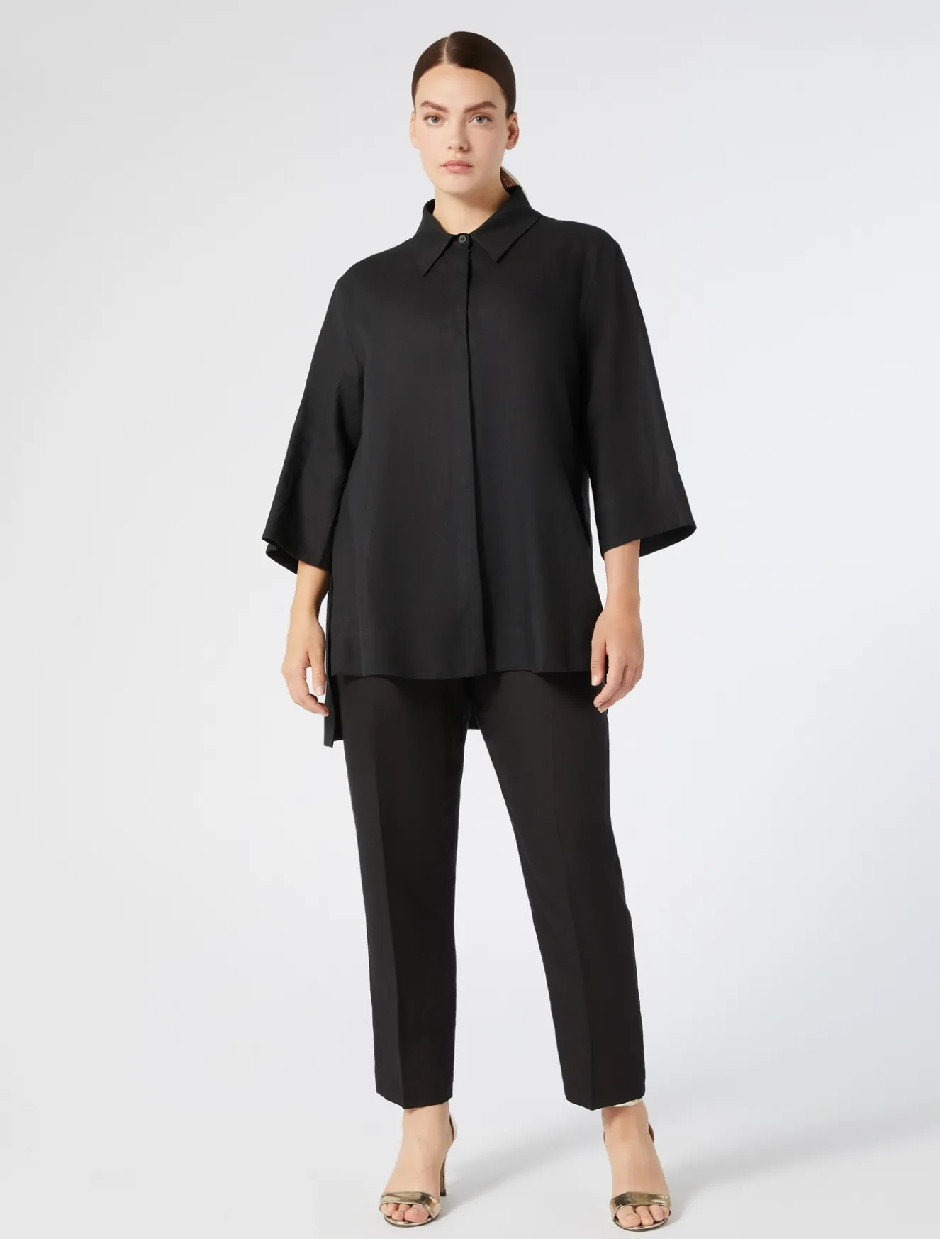 Verleihe deinem Style mit der Hose aus beschichtetem Comfort-Gewebe einen Hauch von Eleganz. Hohe Taille, die die Silhouette betont.Dieses Modell gehört zur Hauptkollektion von Marina Rinaldi.