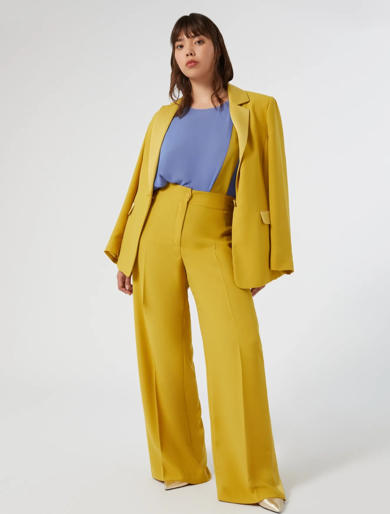 Hose aus Envers-Satin-Krepp mit glänzenden Bändern an der Seite für eine gelungene Smoking-Allüre. Weit geschnitten, um Ihren Outfits einen unerwarteten Touch zu verleihen.