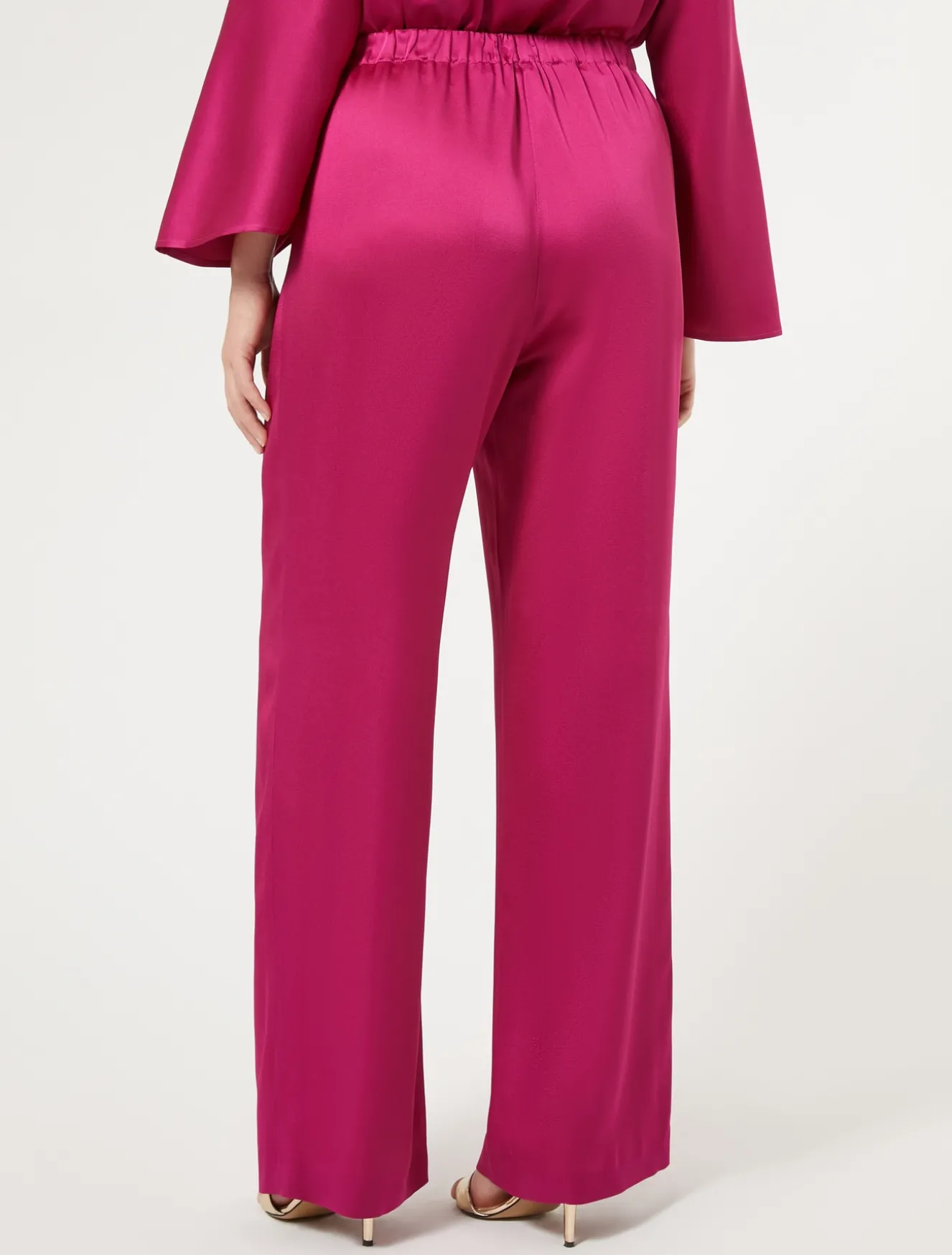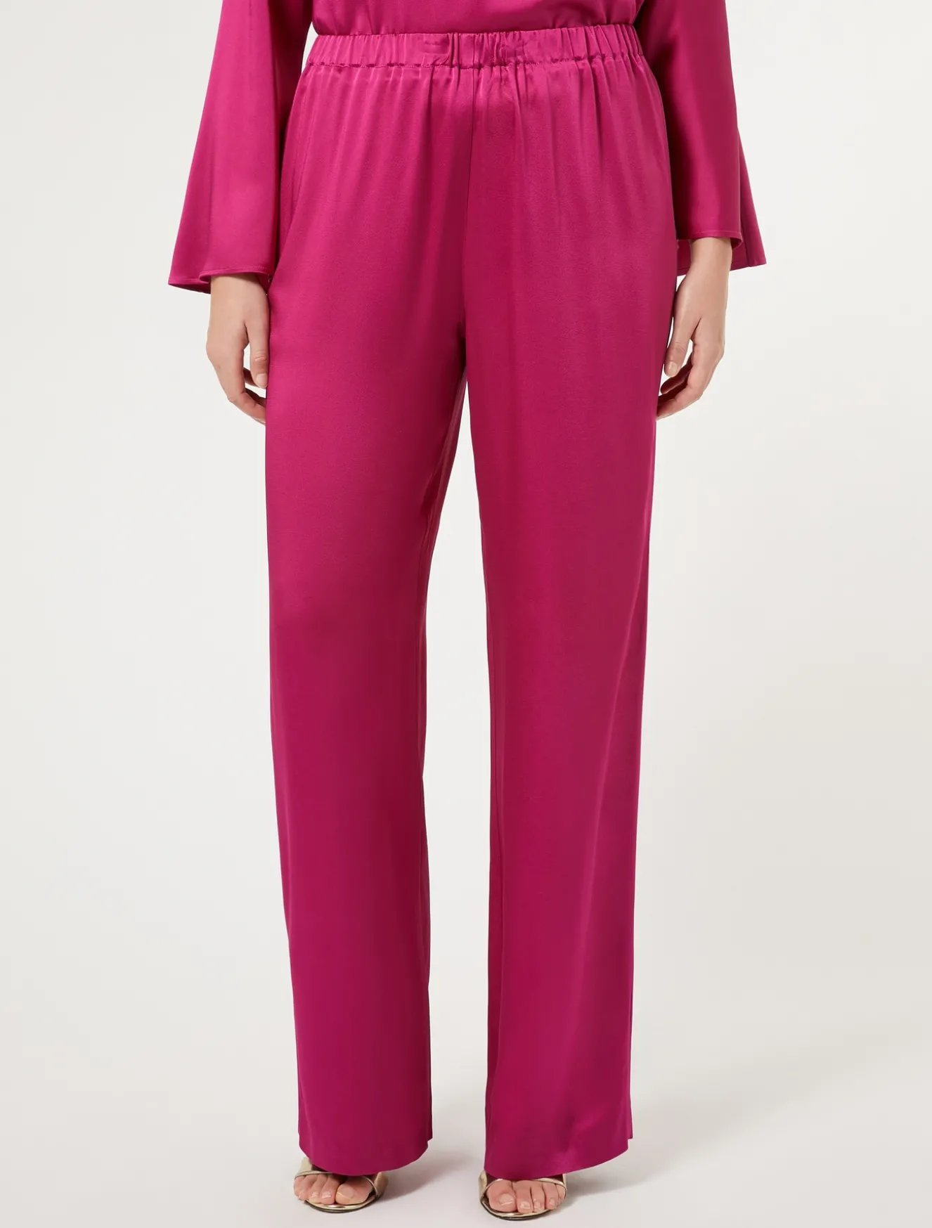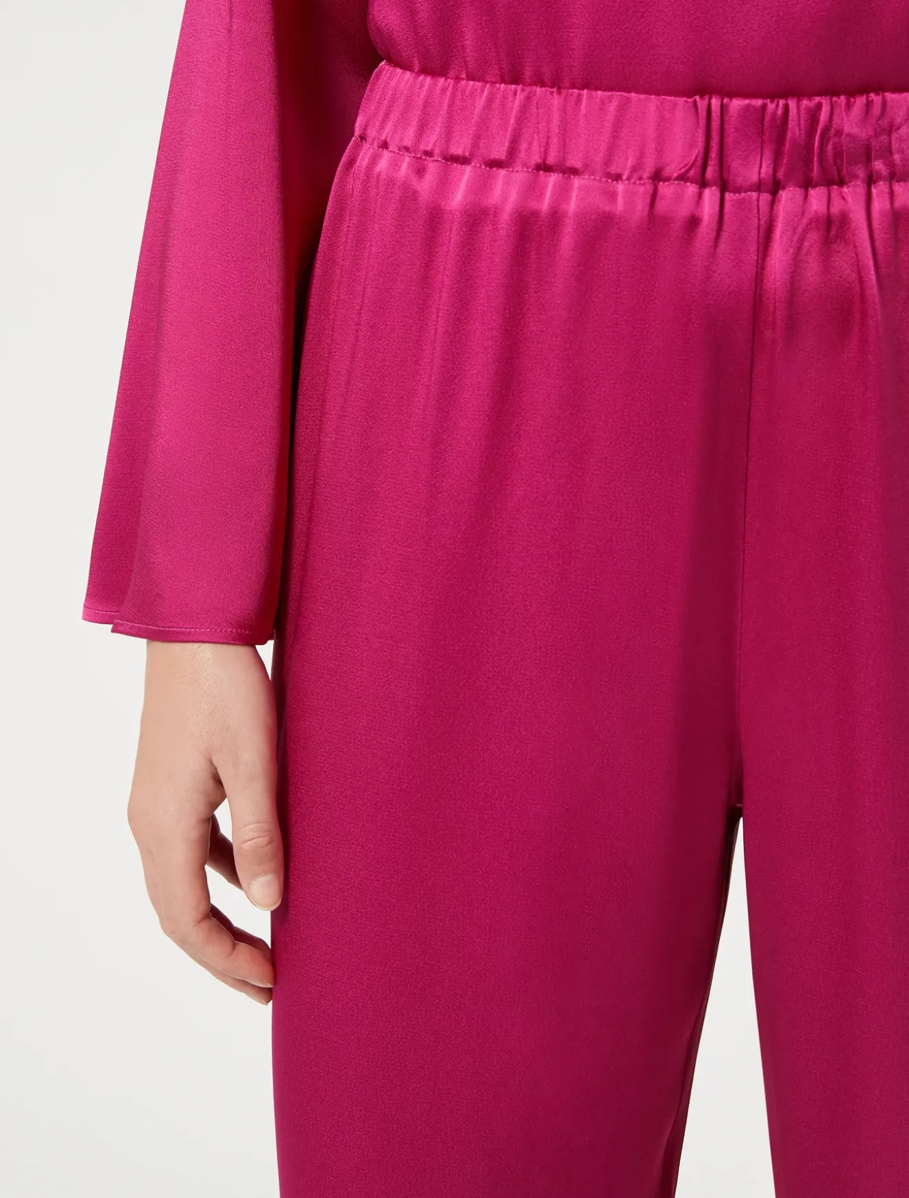Die Hose aus glänzendem Satin mit weitem Schnitt und elastischem Bund für eine weiche und bequeme Passform sorgt für einen leuchtenden und edlen Look. Du kannst sie mit dem passenden Top kombinieren. Das Kleidungsstück ist Teil der Kollektion Elegante.