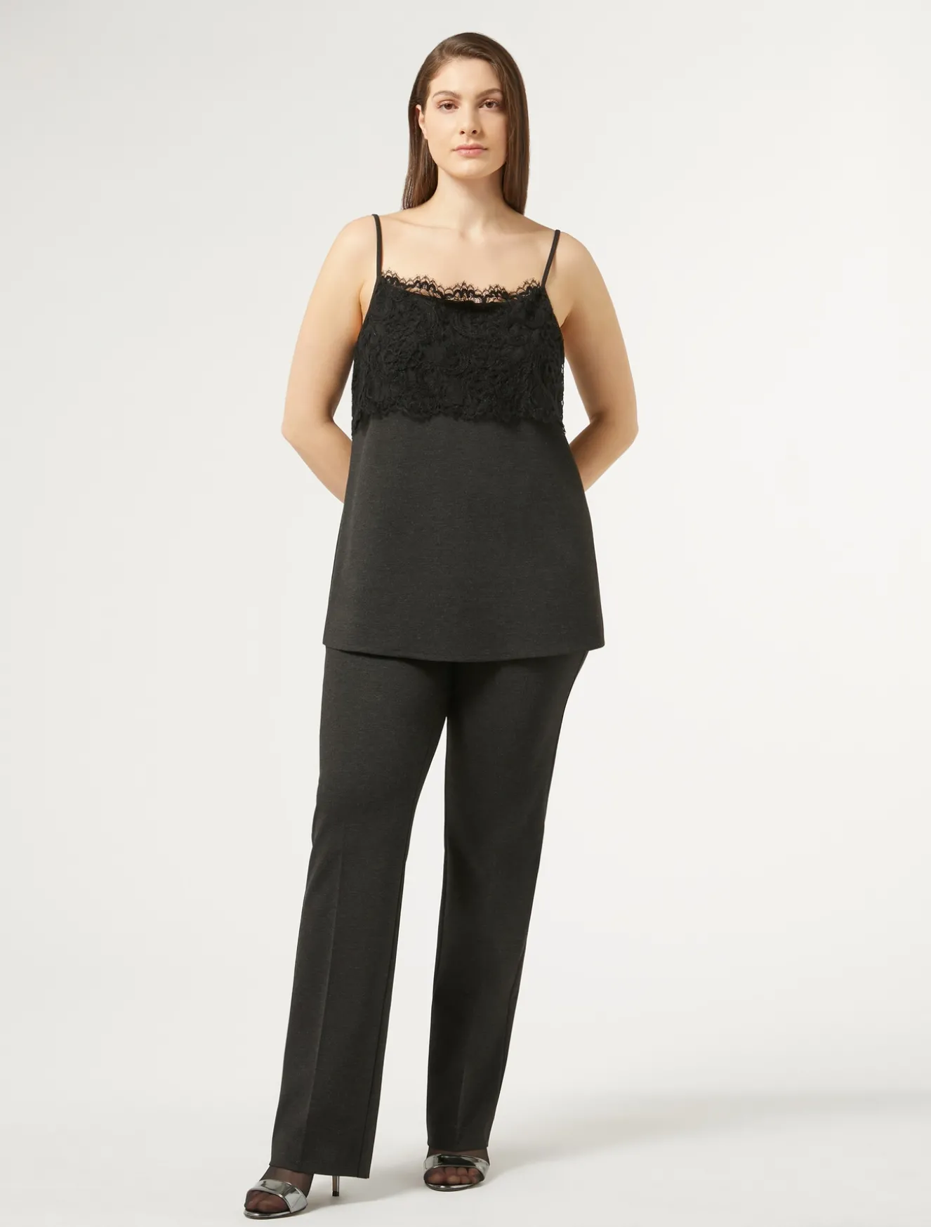 Diese elegante und bequeme Hose aus ausgestelltem Bistretch-Jersey besticht durch ihr klares, geradliniges Design mit verstecktem innenliegendem Elastikband. Perfekt als Basic für zahlreiche Looks, vor allem auch in Kombination mit dem dazu passenden Blazer.Dieses Modell gehört zur Hauptkollektion von Marina Rinaldi.