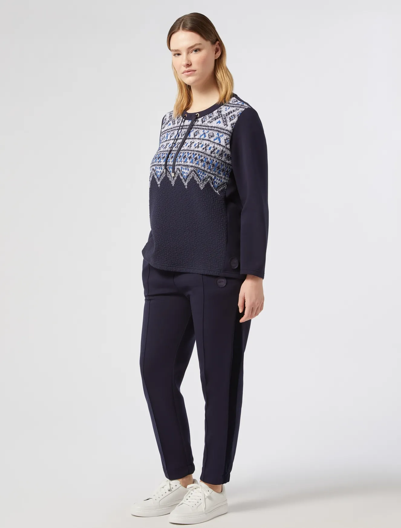 Die Jogginghose aus Scuba-Jersey aus Viskosemischung ist an den Seiten mit Samtbesätzen verziert. Passen bestens zum passenden Sweatshirt.Das Kleidungsstück ist Teil der Kollektion Marina Sport.