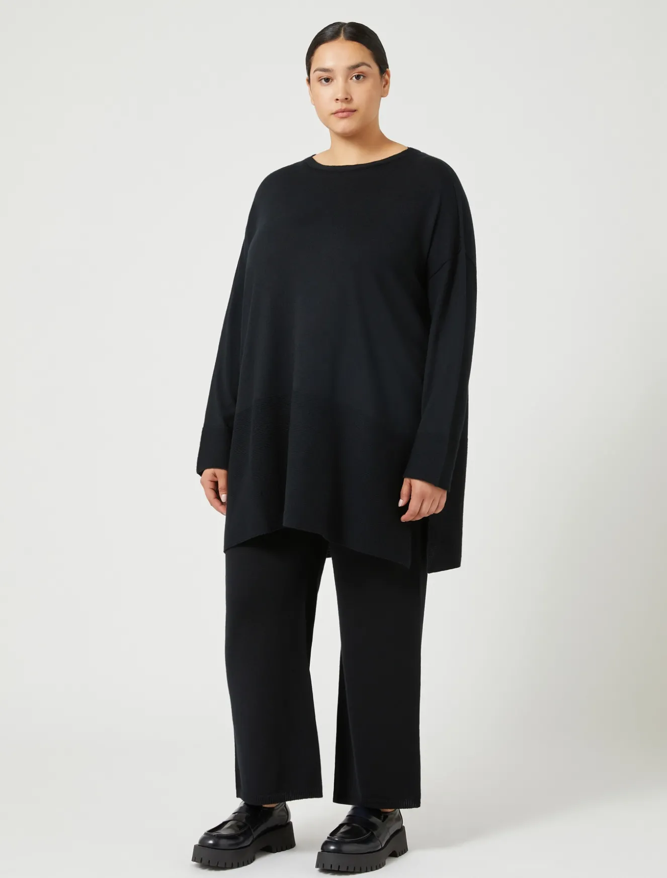 Stilvolle locker geschnittene Hose aus Wollgemisch mit einem elastischen Einsatz am Bund für zusätzlichen Komfort. Gut zu kombinieren mit dem dazu passenden Cardigan.Das Kleidungsstück ist Teil der Kollektion Persona by Marina Rinaldi.– Wollgemisch– Weiter Schnitt– Breiter elastischer Bund– Verarbeitung im Glattstrick– Rippsaum