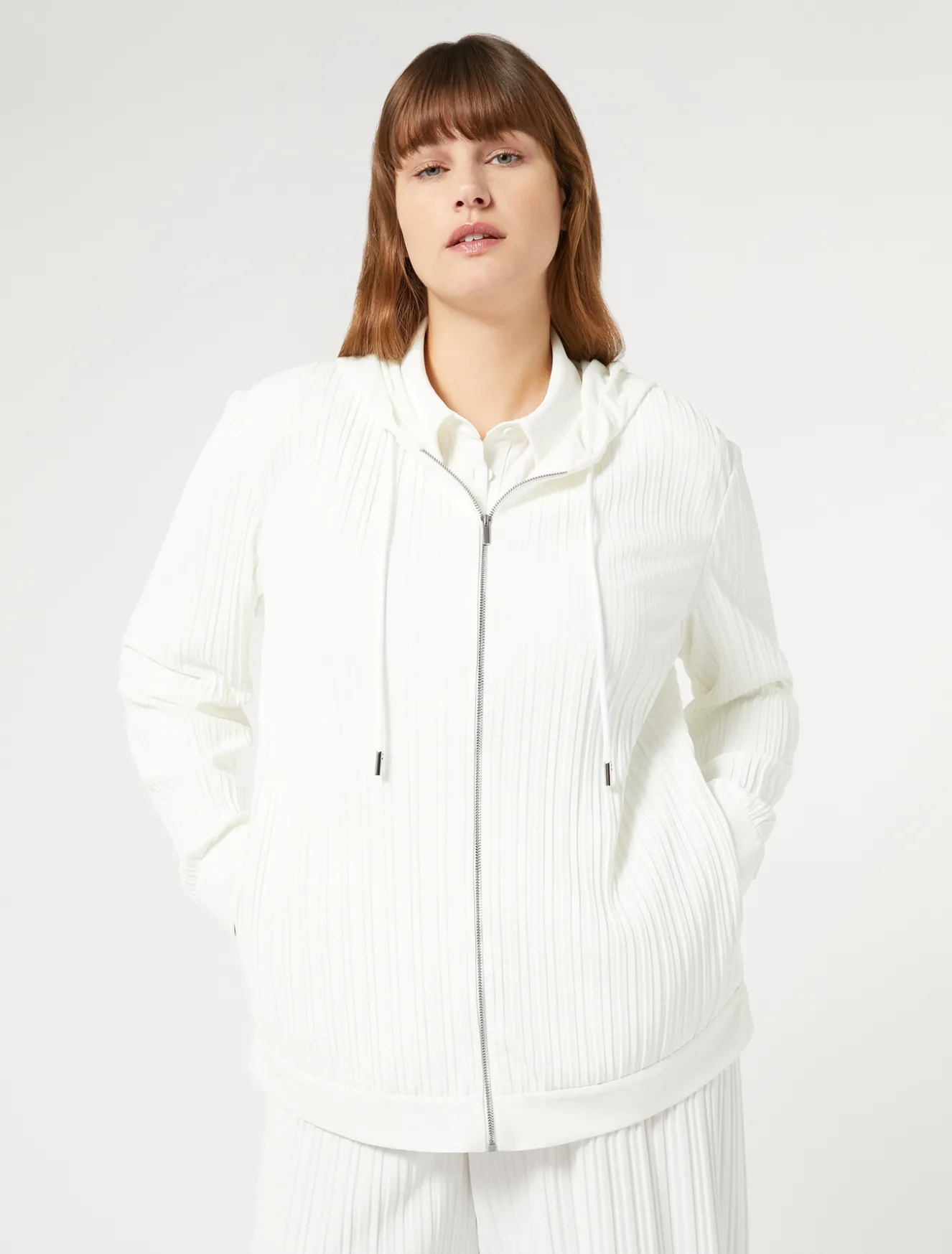 Weiche Jacke aus einfarbigem Plissee-Jersey. Warum nicht gleich dazu die passende Hose tragen?Das Kleidungsstück ist Teil der Kollektion Voyage Relax.