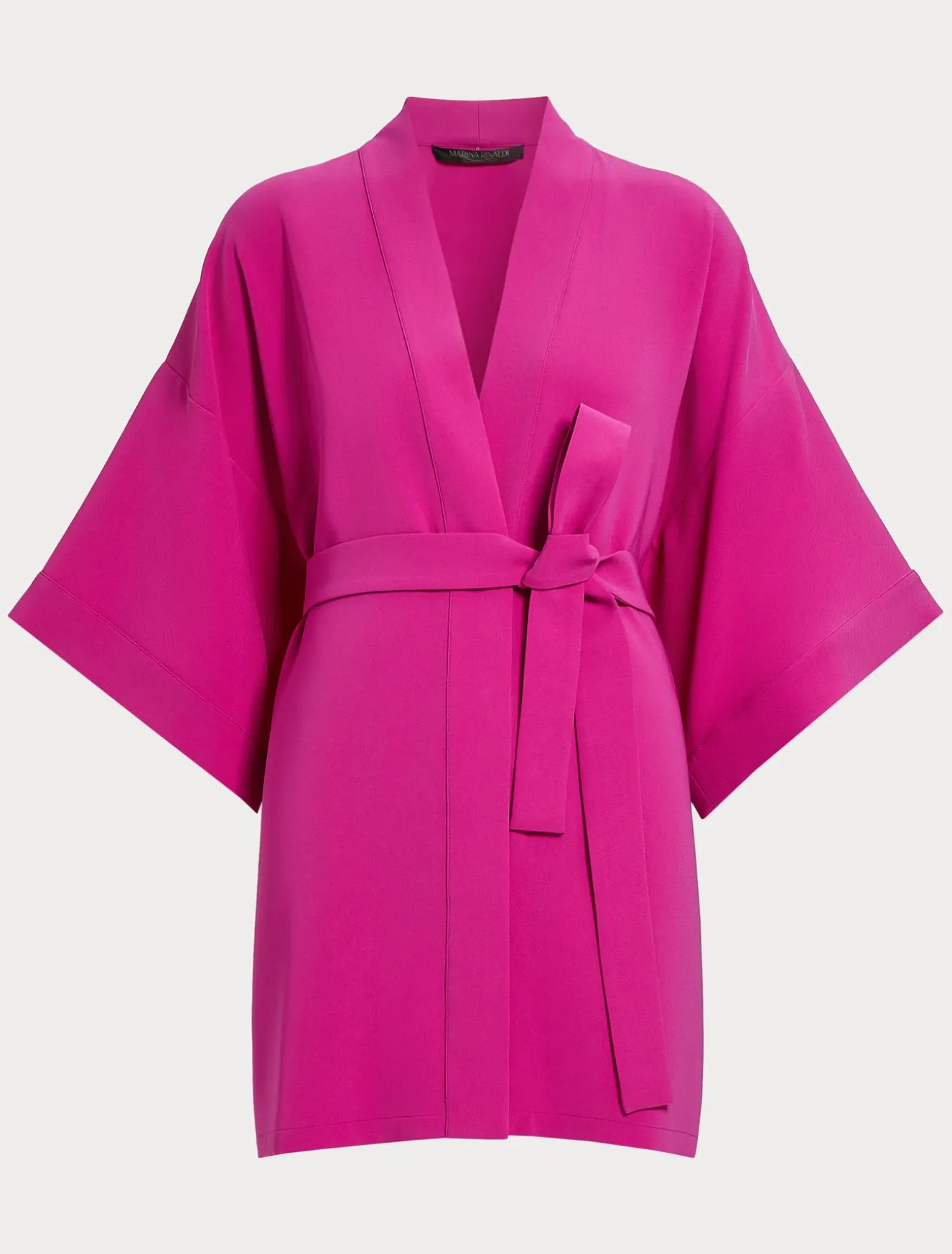 Dieser Kimono-Kasack ist aus Comort Triacetat-Cady gefertigt, einem fließenden Material, das Problemzonen kaschiert und pflegeleicht ist. Kragen und Bündchen mit Paspeldetails. Gut mit dem passenden Top und den passenden Hosen zum Set kombinierbar.Dieses Modell gehört zur Hauptkollektion von Marina Rinaldi.
