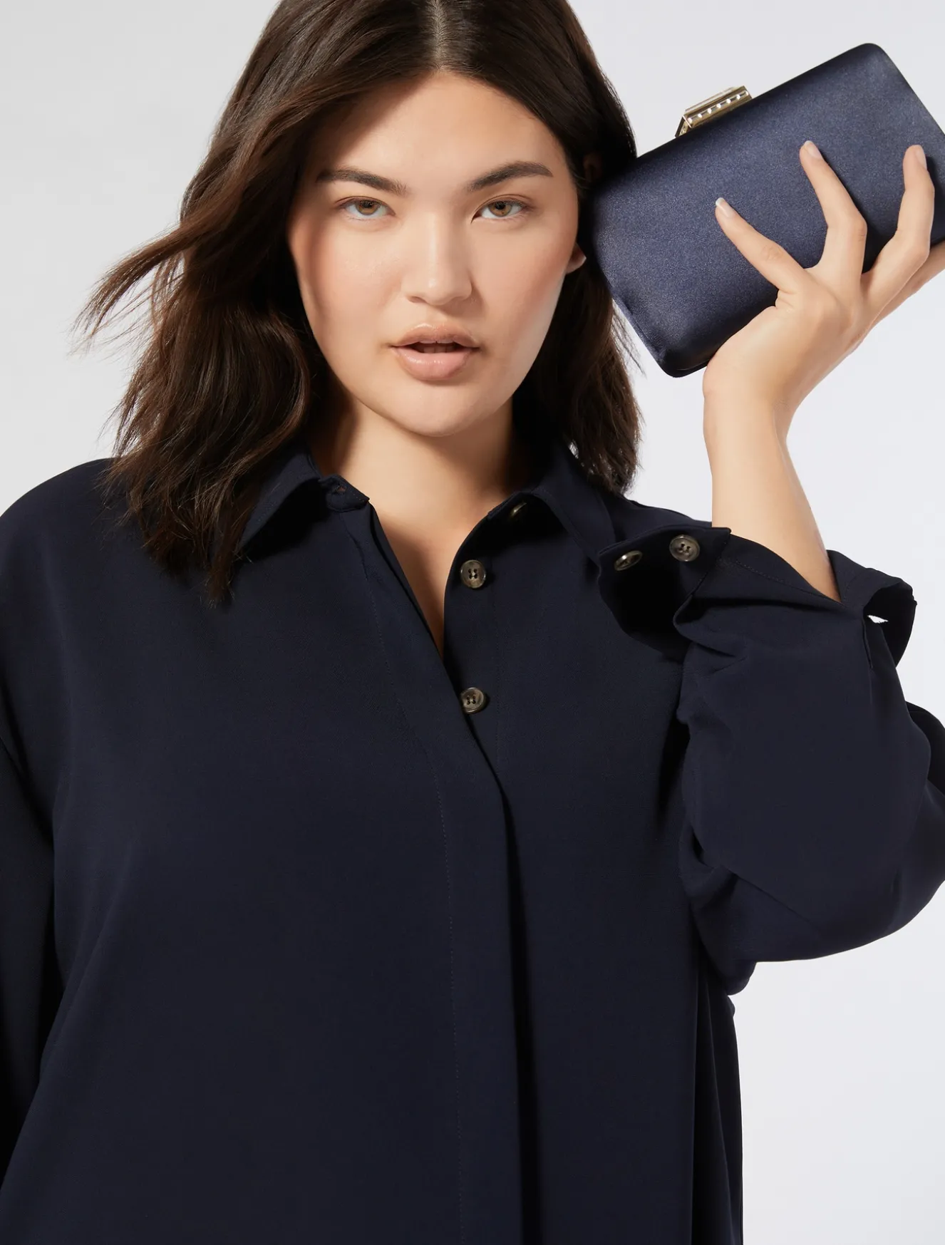 Diesen Kasack aus Comfort Triacetat-Cady, einem fließenden Material, das Problemzonen kaschiert und pflegeleicht ist, kannst du nach Belieben kombinieren. Vielseitiges Stück, das sich perfekt für einen Komplettlook mit der dazu passenden Hose eignet.Dieses Modell gehört zur Hauptkollektion von Marina Rinaldi.