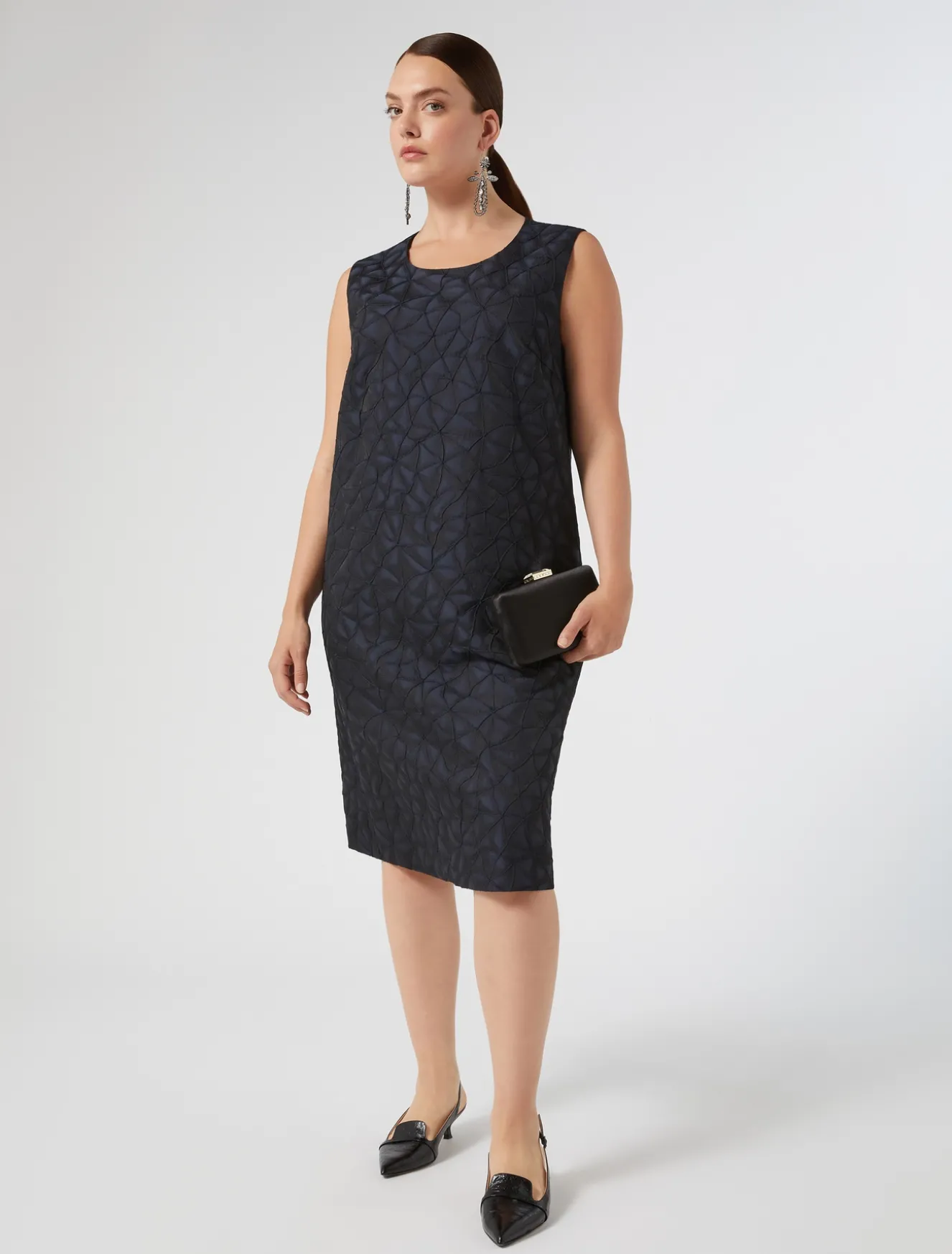Schlichtes und elegantes Jacquard-Kleid mit ausgestellter Linie. Die mitgelieferten Ärmel können jederzeit von einem Schneider angebracht werden.