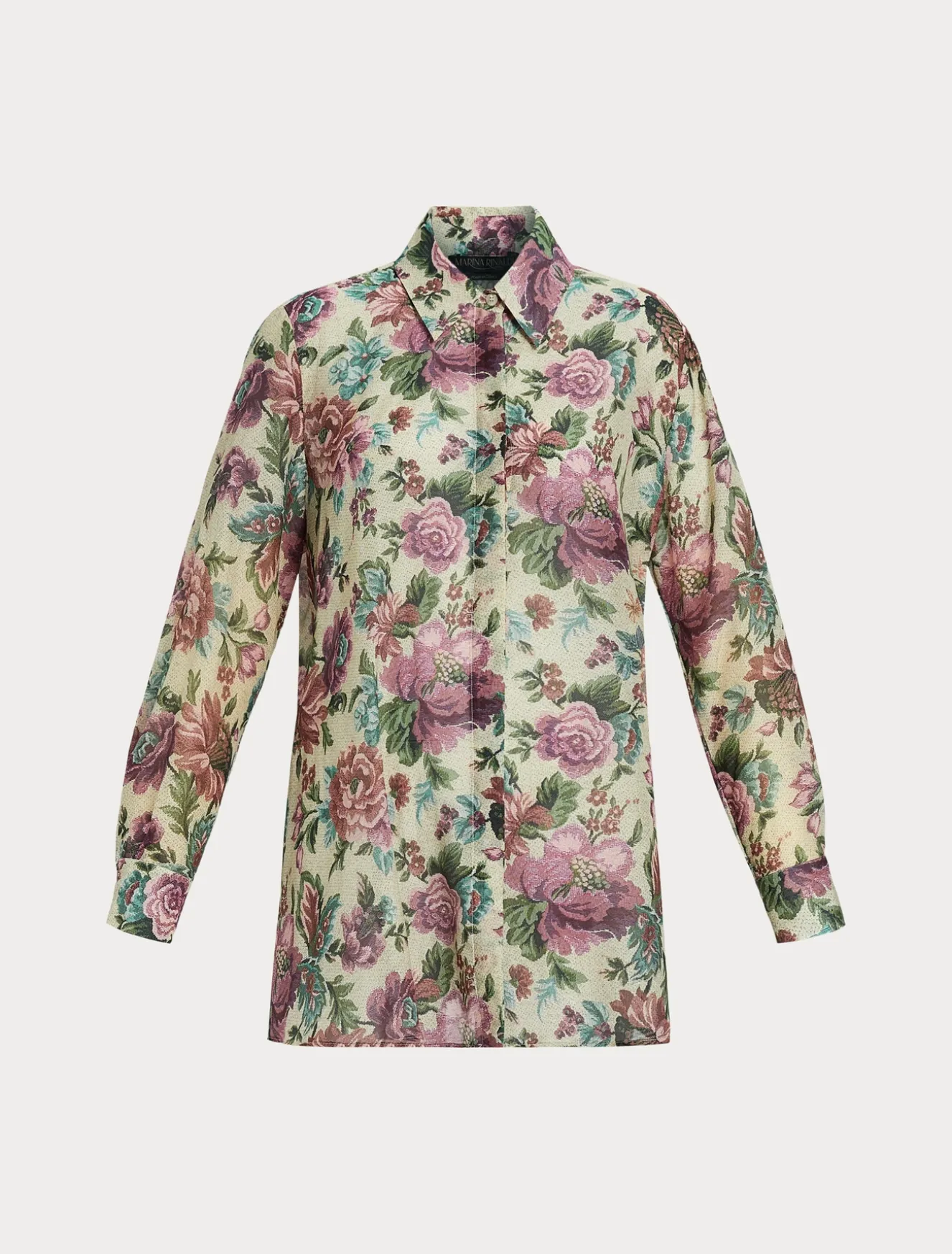 Ausgestellter Kasack aus hauchzartem Baumwoll-Seiden-Voile mit einem exklusivem Musterprint. Perfekt, um einem Outfit einen raffinierten Touch zu verleihen.Dieses Modell gehört zur Hauptkollektion von Marina Rinaldi.