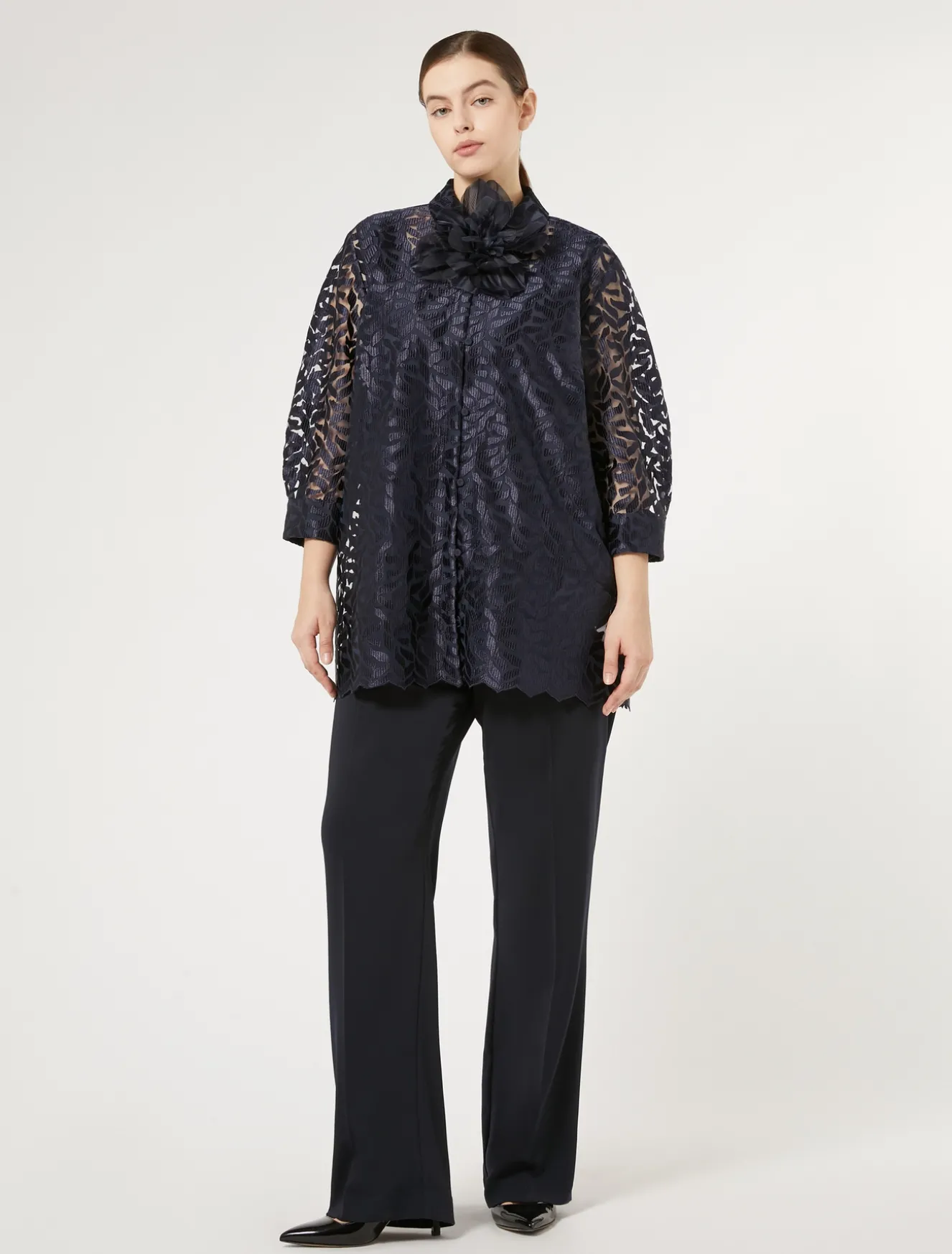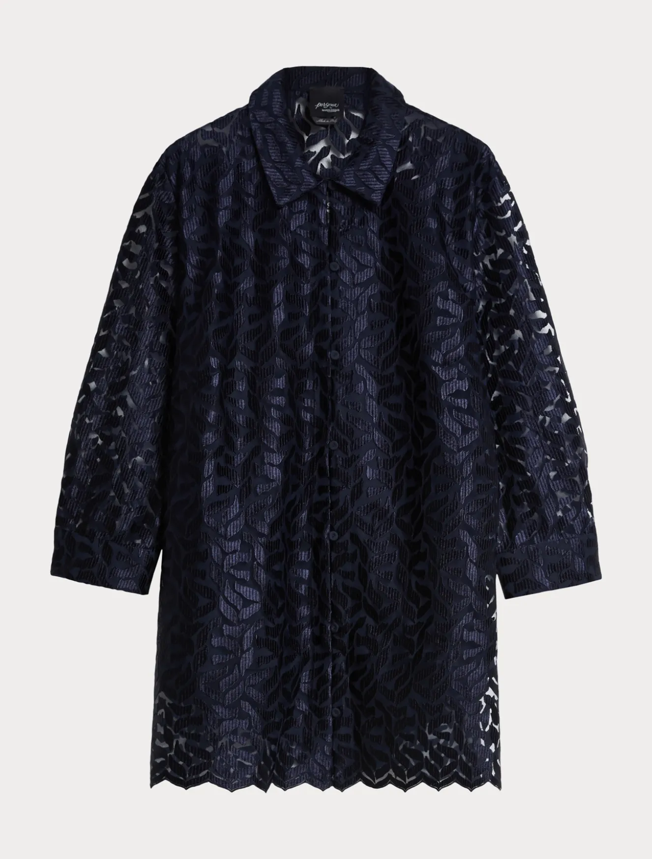 Kasack aus besticktem Tüll mit romantischen Texturen, Hemdkragen, langen Ärmeln und Knopfverschluss. Trage dazu das passende Top für mehrere Styling-Kombinationen.Das Kleidungsstück ist Teil der Kollektion Persona by Marina Rinaldi.