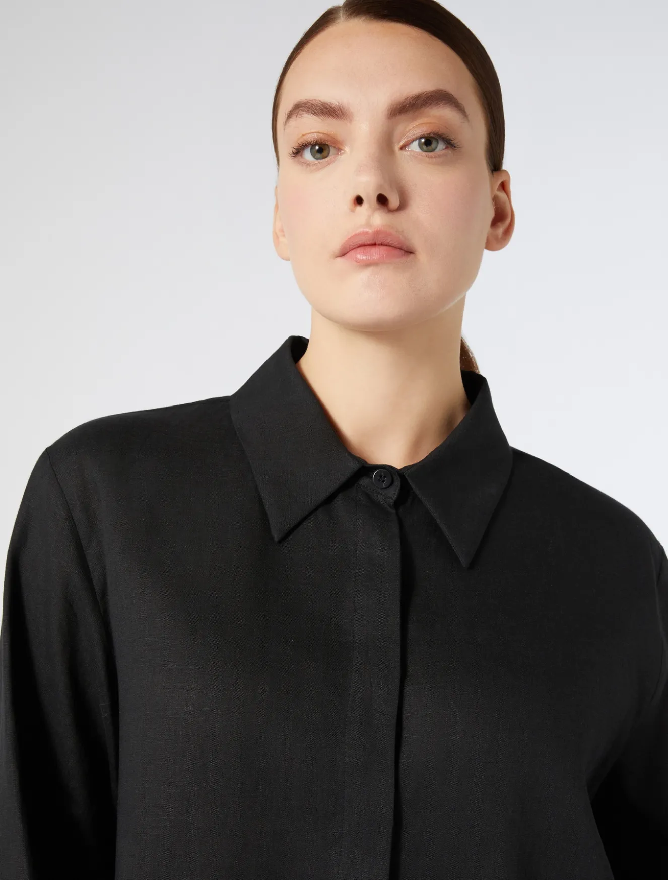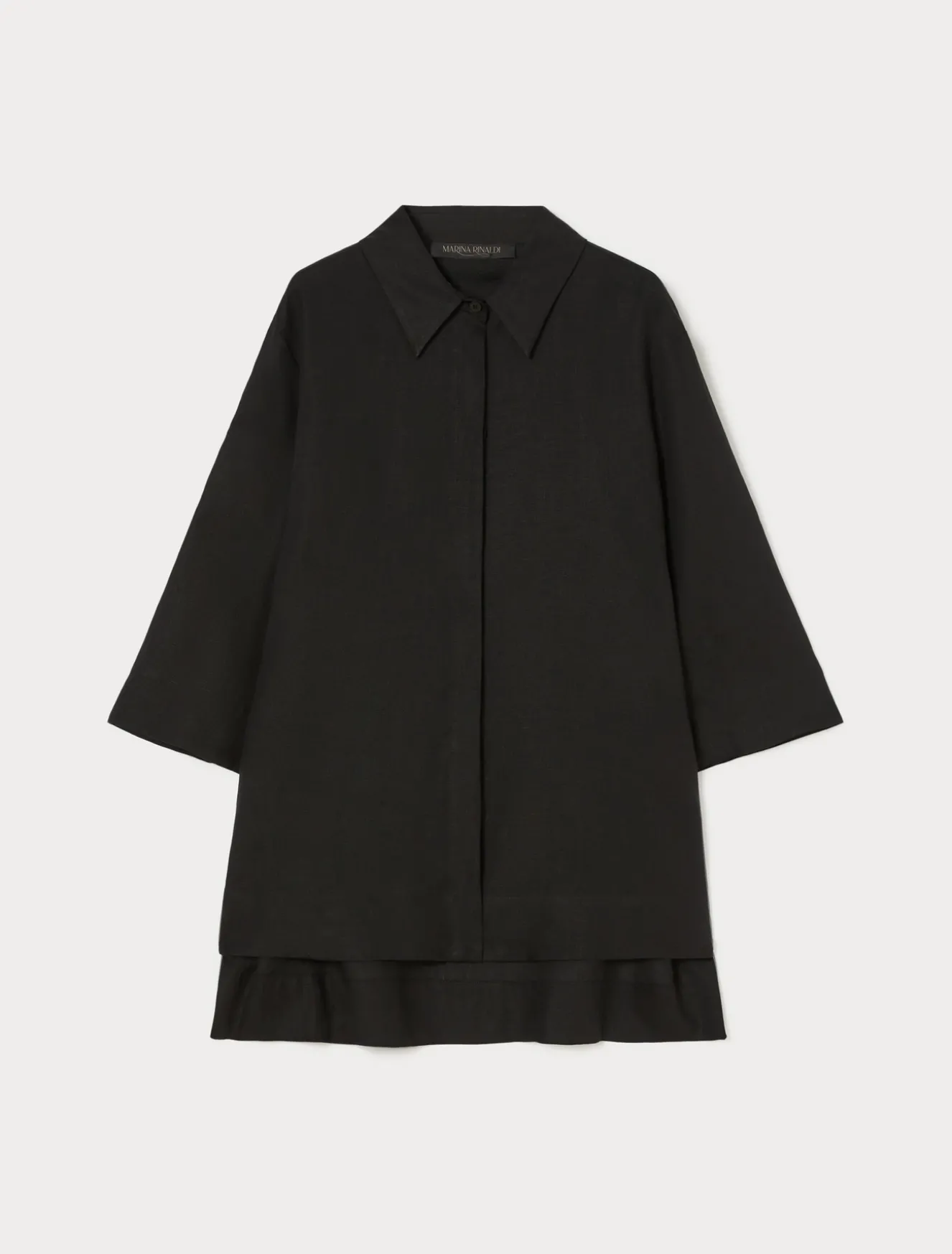 Der Kasack aus reinem Leinen-Canvas hat eine leicht ausgestellte Silhouette, die sich einfach kombinieren und tragen lässt. Der Joker für jeden Kleiderschrank, auch mit der dazu passenden Hose zu tragen. Dieses Modell gehört zur Hauptkollektion von Marina Rinaldi.
