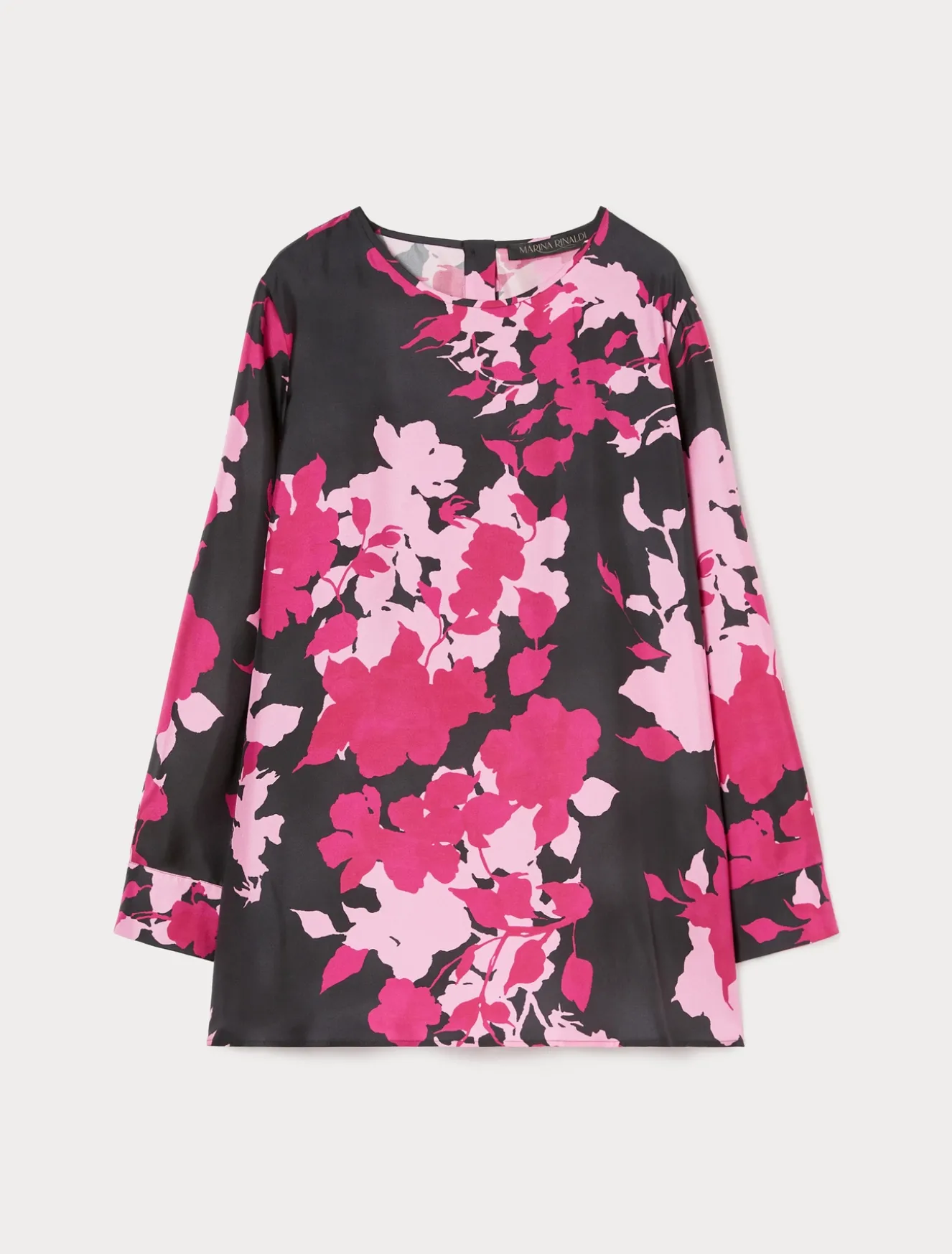 Locker und gerade geschnittener Kasack aus bedruckter Seide mit exklusivem Print. Er verleiht jedem Outfit sogleich eine grafische Note.