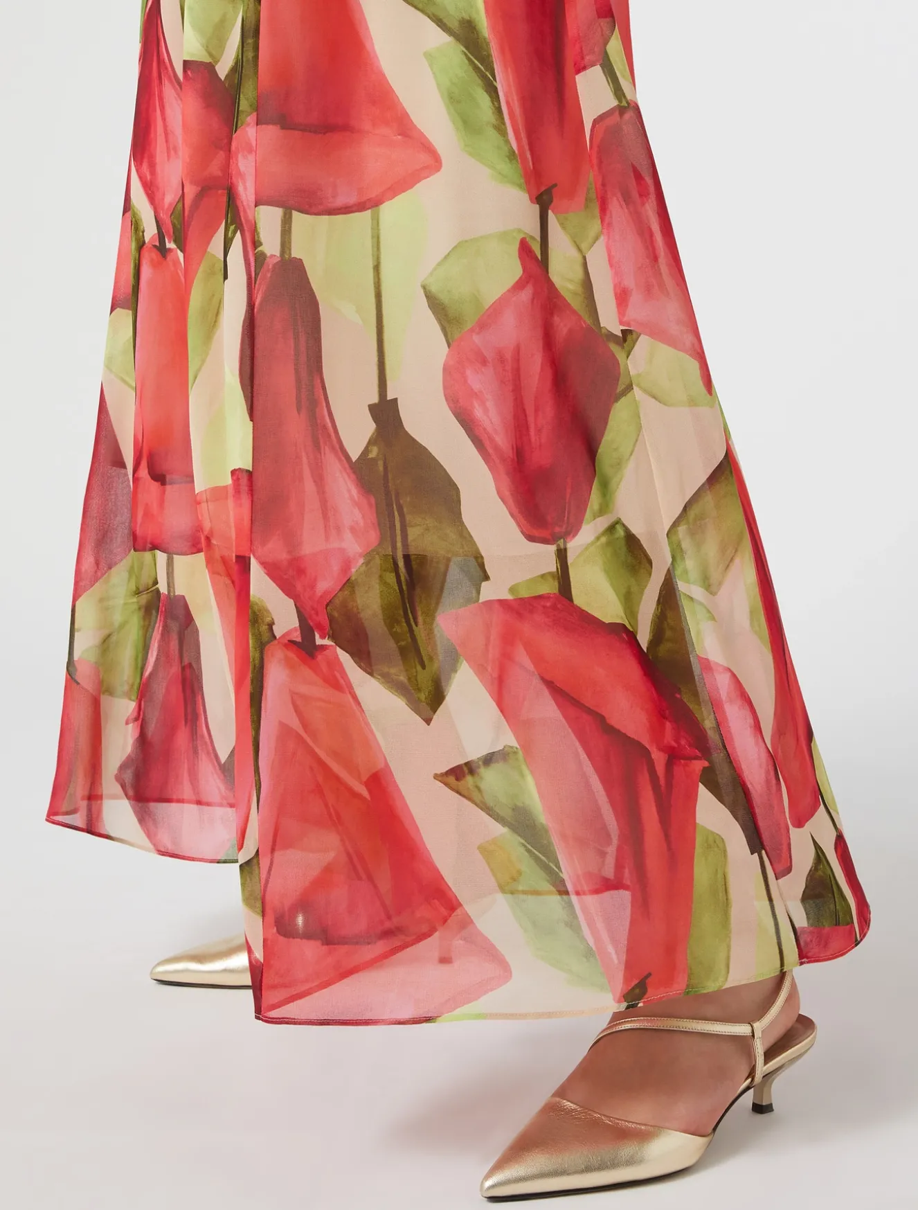 Kleid aus Georgette mit fließender Passform und exklusivem Musterprint. Die mitgelieferten kurzen Ärmel können jederzeit von einem Schneider angebracht werden.