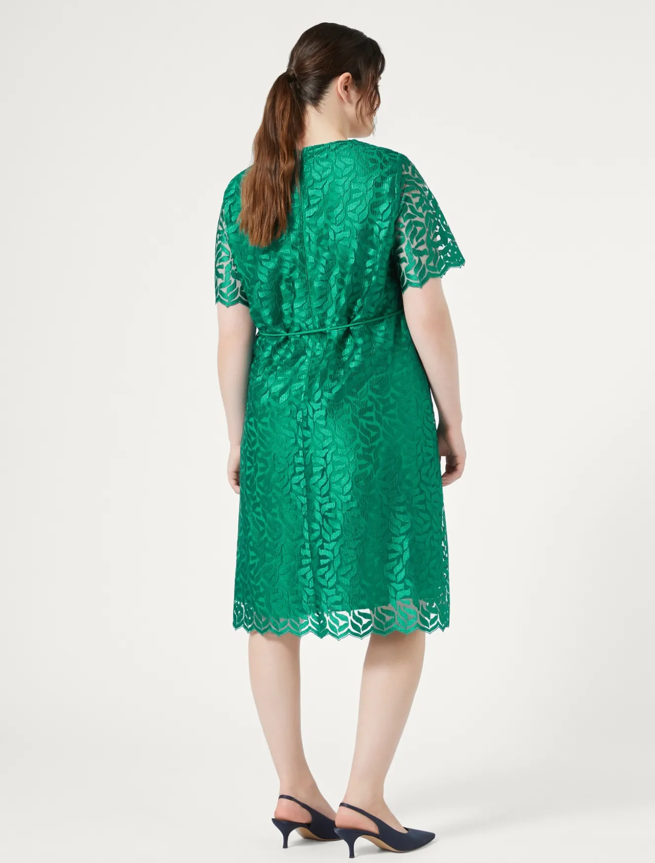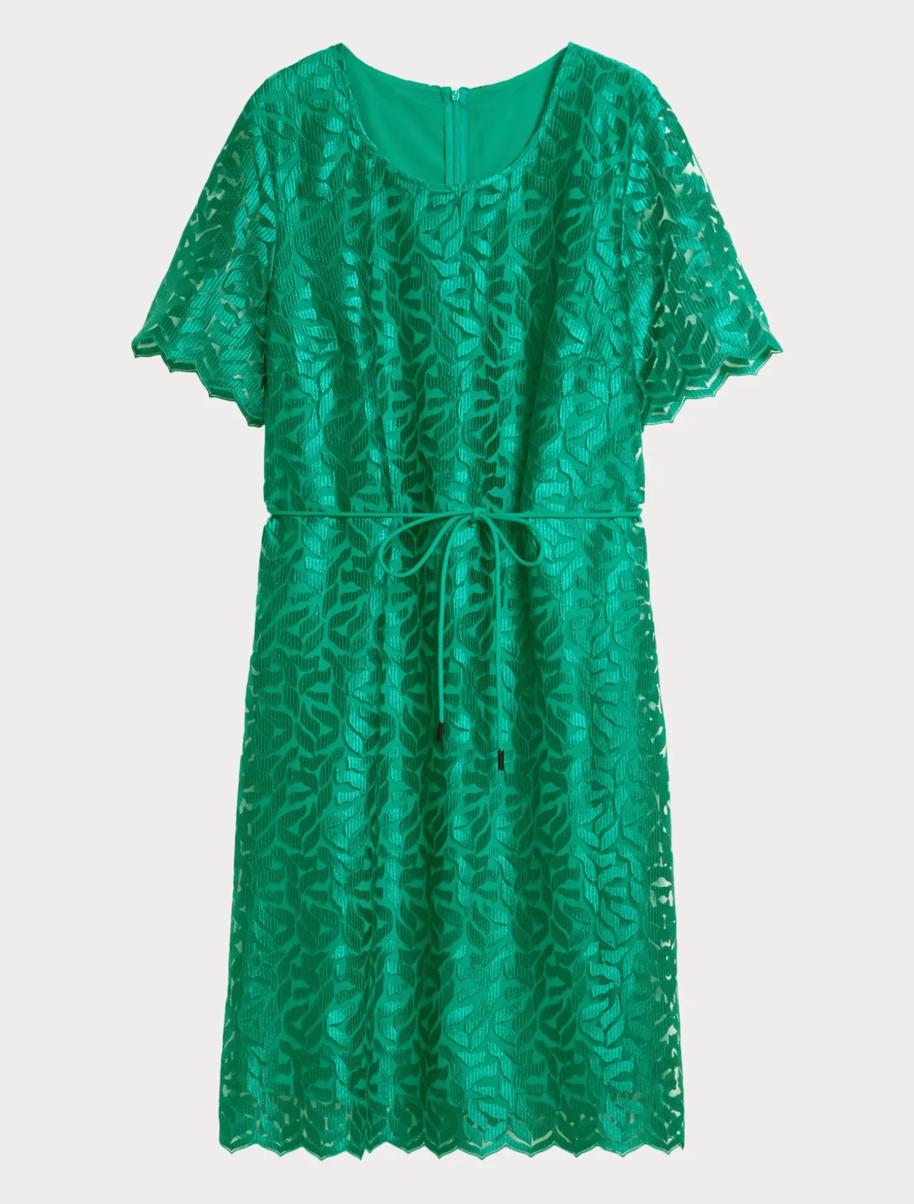 Kleid aus Tüll mit Layering-Effekt, aufgesticktem Blättermuster, Rundhalsausschnitt und kurzen Ärmeln. Details wie gewellte Säume und der passende Gürtel runden den Style ab.Das Kleidungsstück ist Teil der Kollektion Persona by Marina Rinaldi.