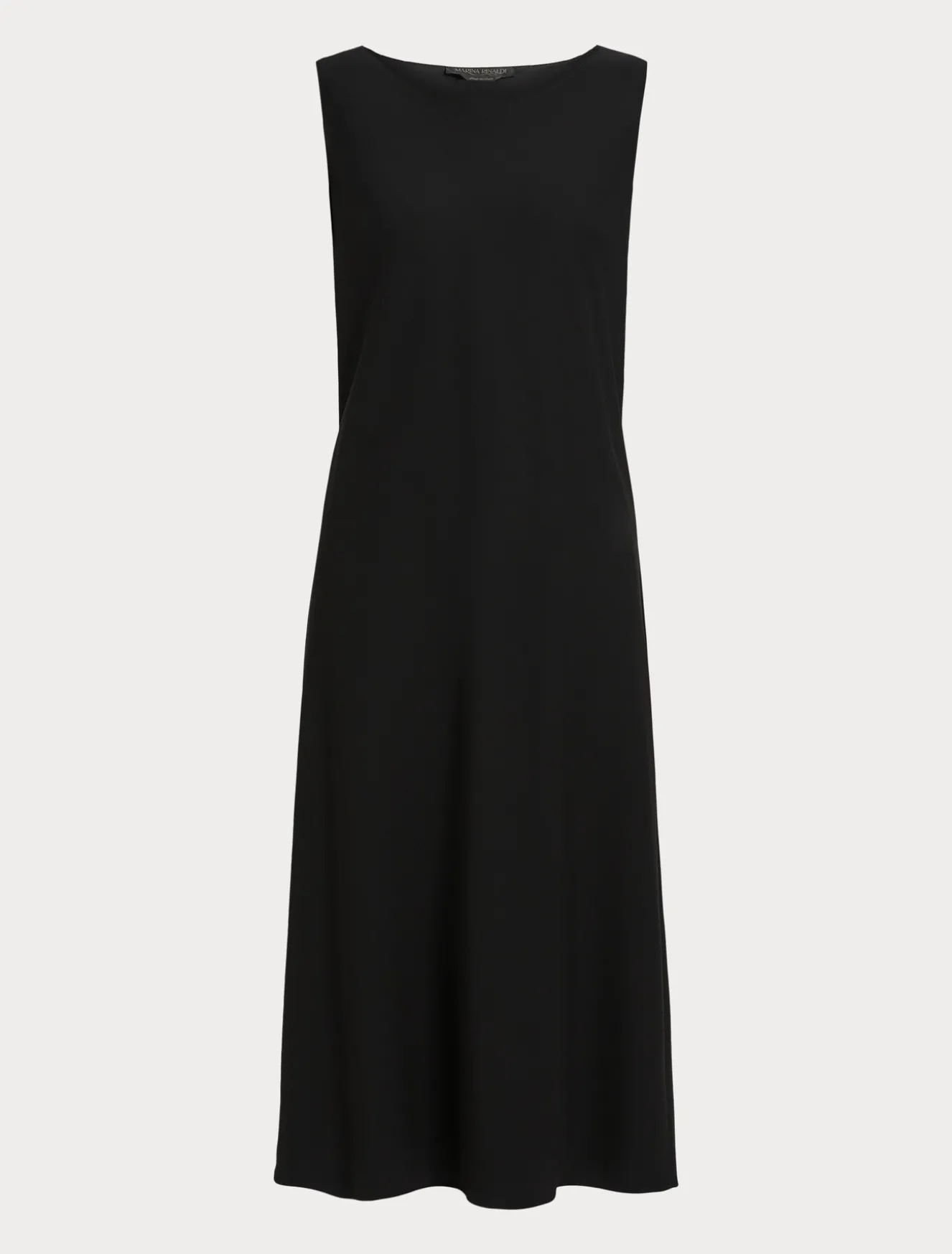Dieses schräg geschnittene Kleid aus Comfort Woll-Crêpe-Satin wird von handgefertigten Couture-Nähten geziert. Die mitgelieferten Ärmel können jederzeit von einem Schneider angebracht werden.Dieses Modell gehört zur Hauptkollektion von Marina Rinaldi.