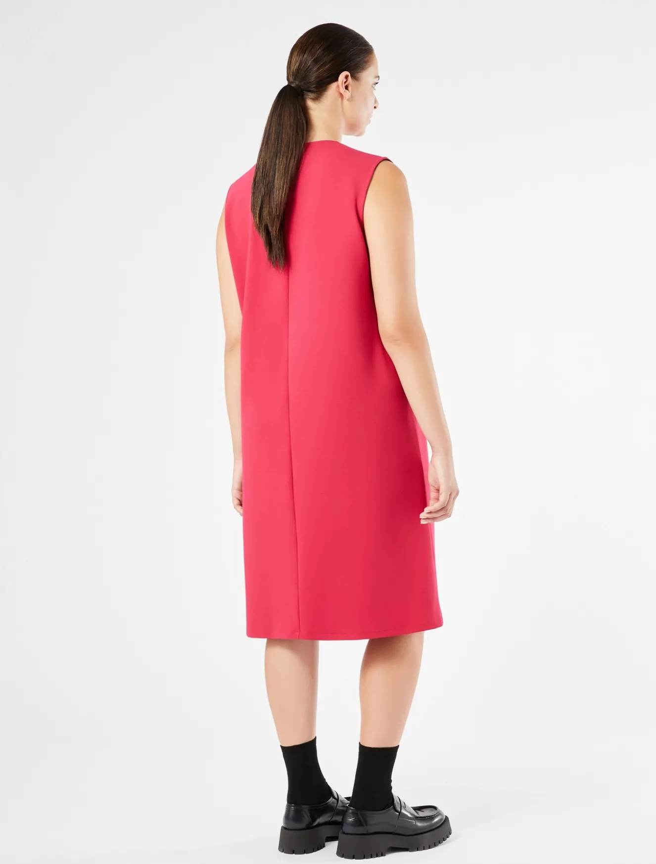 Ein vielseitiges Jerseykleid in ausgestellter Form. Die kurzen Ärmel lassen sich unschwer von einem Schneider anbringen.Das Kleidungsstück ist Teil der N.O.W.