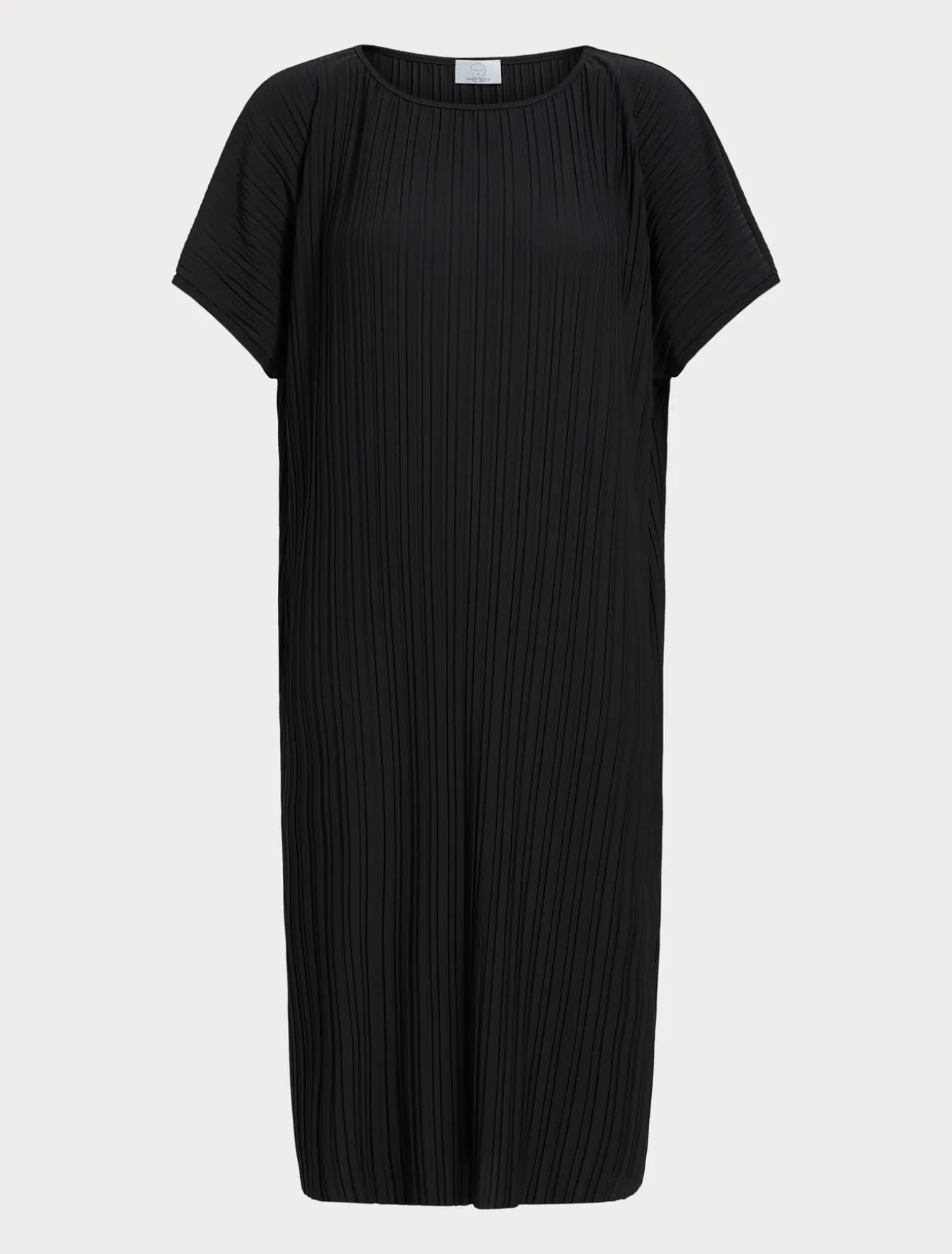 Gerade geschnittenes Midikleid aus plissiertem Jersey mit vielseitiger Silhouette, das sich schnell als unentbehrlich für Freizeit und ungezwungene Anlässe entpuppt.Das Kleidungsstück ist Teil der Kollektion Voyage Relax.