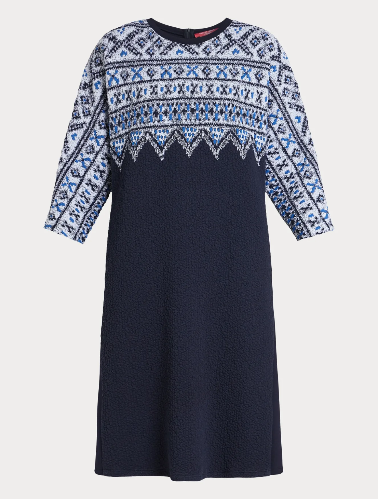 Dieses Kleid aus Scuba-Jersey aus Viskosemischung mit Stretchanteil besticht durch seinen gesteppten Einsatz aus Jersey-Trikot vorne und die nordischen Disegni. Einfach überziehen und fertig.Das Kleidungsstück ist Teil der Kollektion Marina Sport.