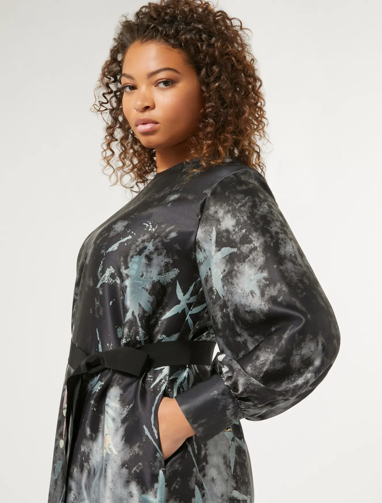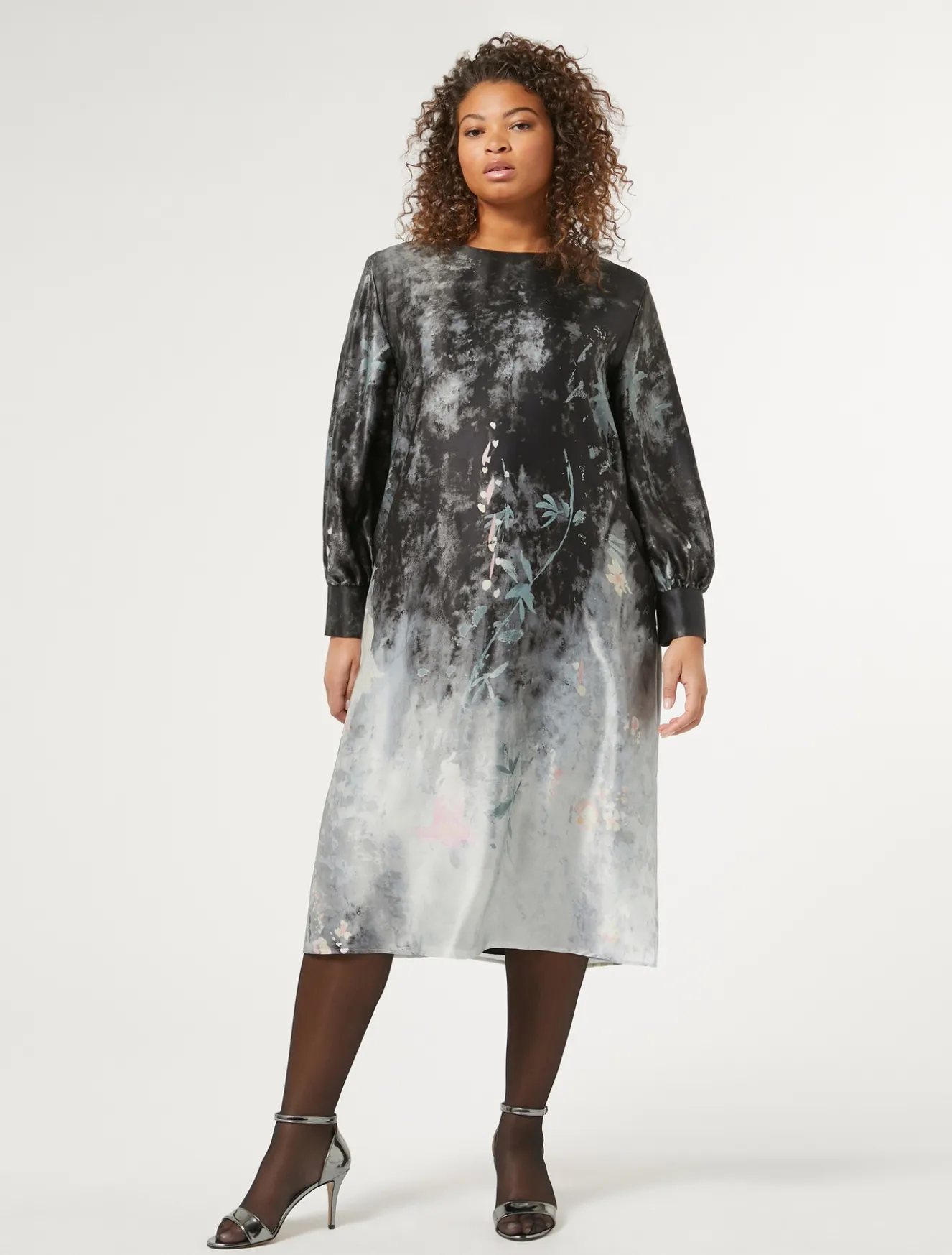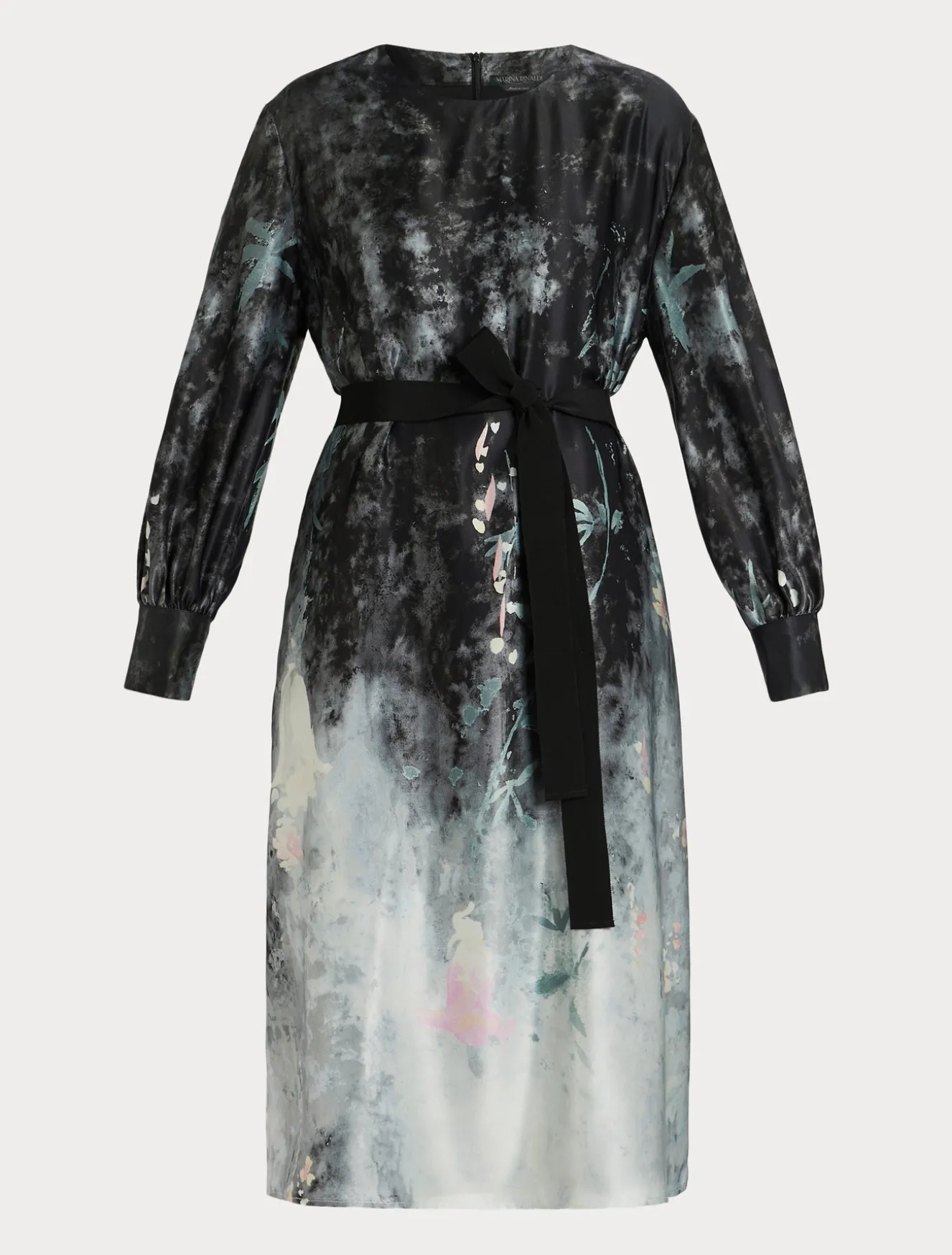 Dieses gerade geschnittene Kleid aus Seidensatin mit exlusivem Placement-Print besticht durch einen Blumenprint mit Farbverlauf. Das Modell kann mit oder ohne den dazugehörigen Gürtel getragen werden.Dieses Modell gehört zur Hauptkollektion von Marina Rinaldi.