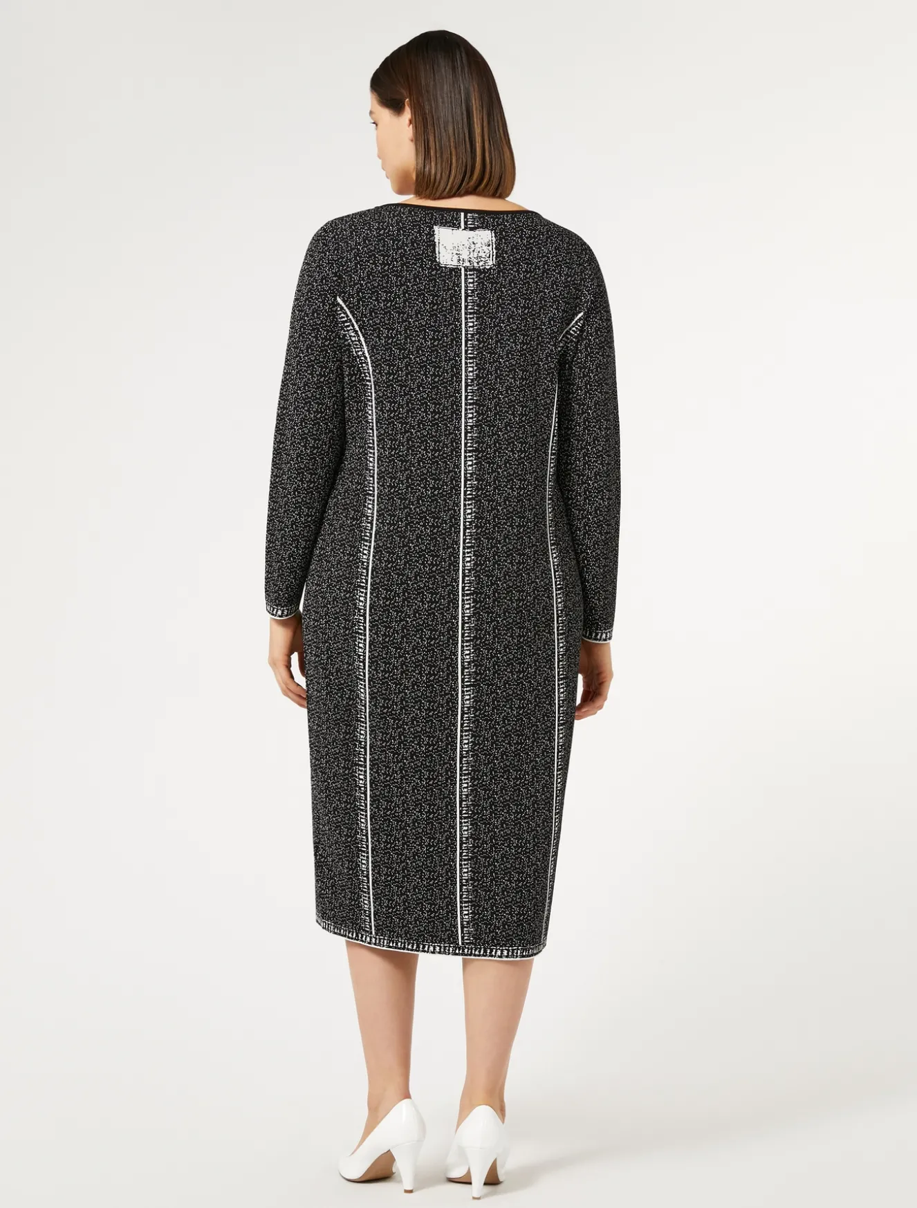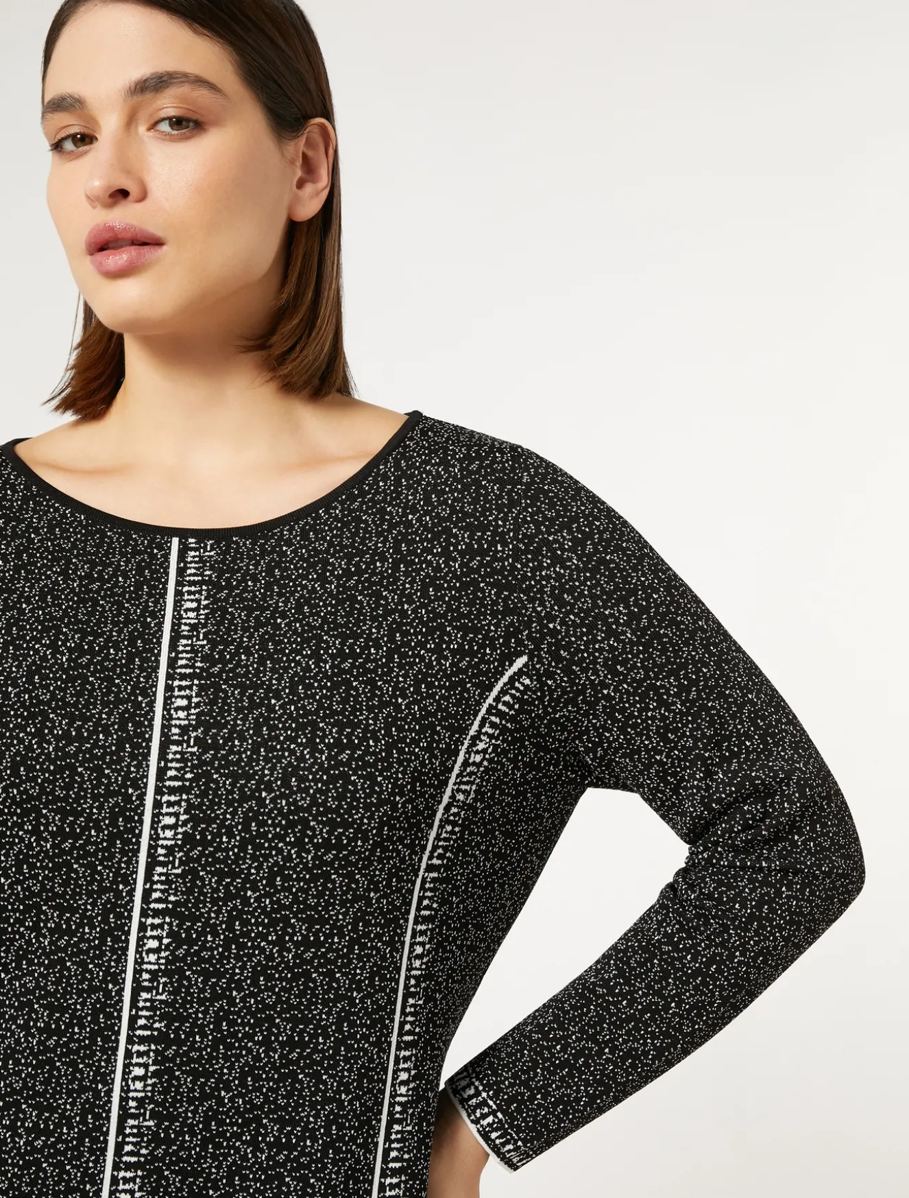 Etwas schmaler geschnittenes Kleid aus zweifarbiger Comfort Viskose-Jacquard. Raffiniertes Strickmodell, das für den Alltag wie gemacht ist.Dieses Modell gehört zur Hauptkollektion von Marina Rinaldi.