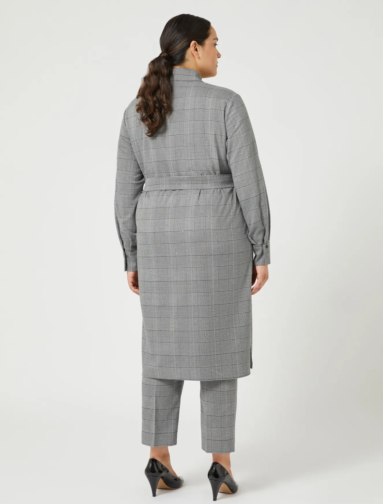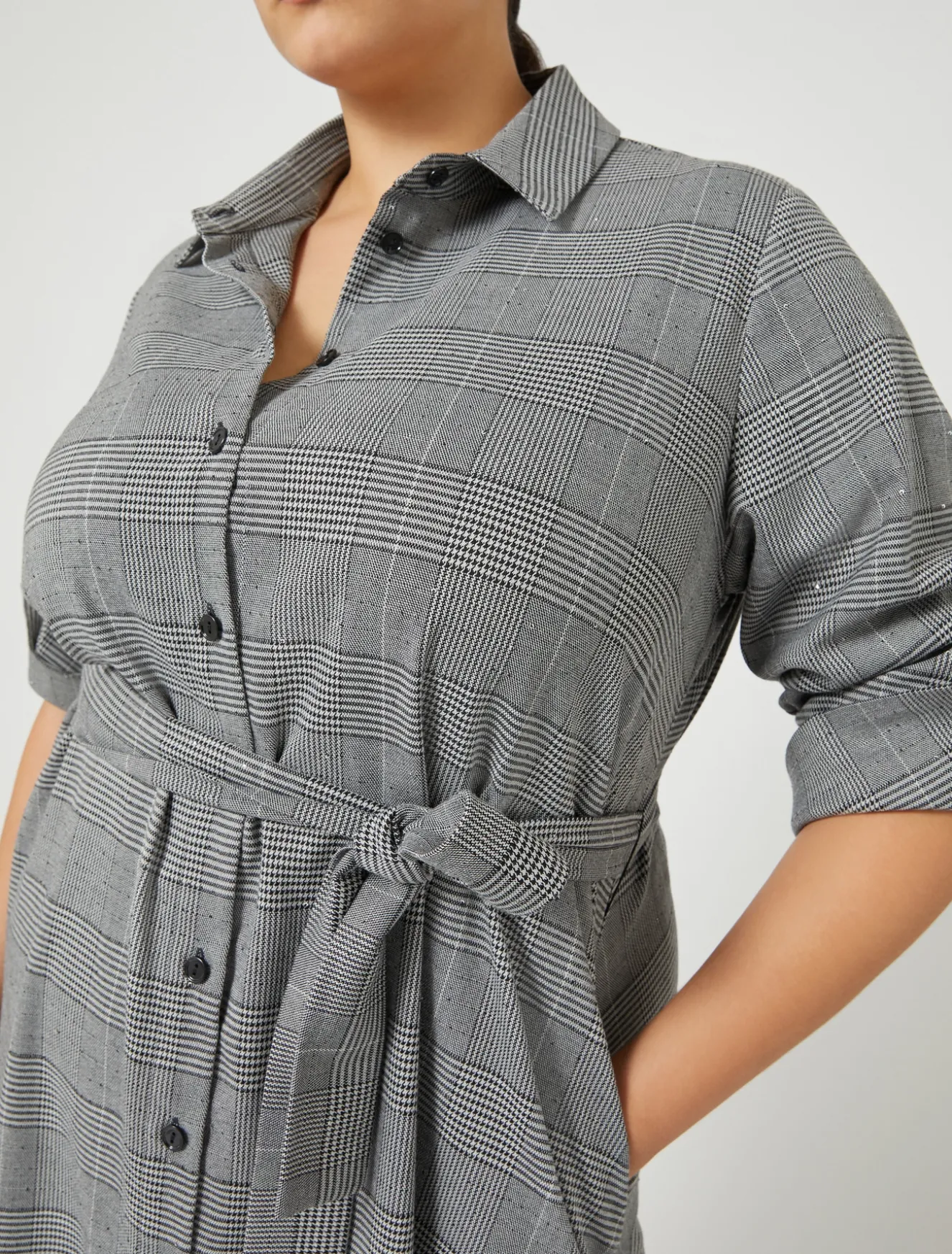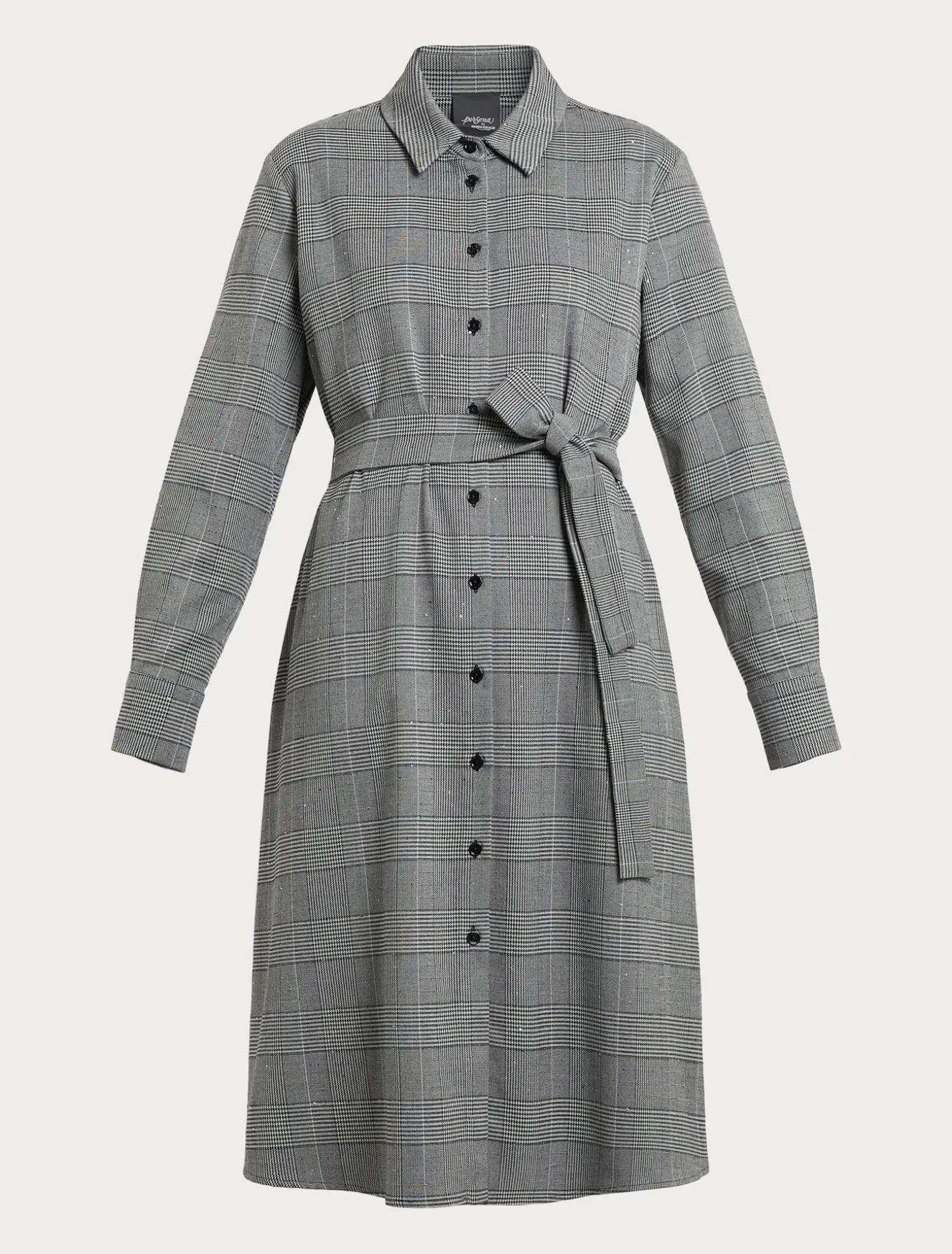Schickes Hemdblusenkleid für den Alltag aus garngefärbtem Stoff mit Glencheckmuster. Du kannst den Sitz mit dem passenden Gürtel in der Taille regulieren.Das Kleidungsstück ist Teil der Kollektion Persona by Marina Rinaldi.– Gemusterter, garngefärbter Stoff– Gerader Schnitt– Hemdkragen– Lange, geknöpfte Manschettenärmel– Knopfleiste– Seitenschlitze– Passender Gürtel