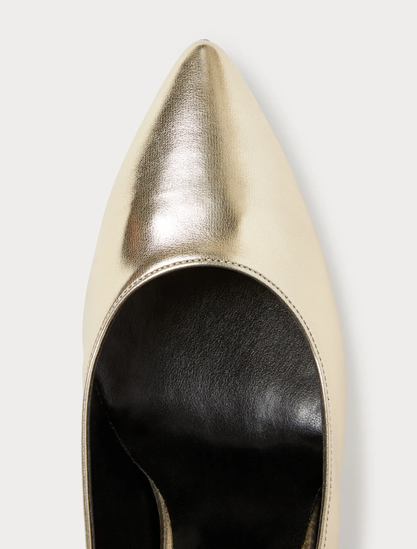 Setze deinen Style mit den beschichteten Pumps aus Stoff in Metallic-Lederoptik mit schmaler Zehenpartie in Szene. Sie verleihen deinen besonderen Outfits einen modernen, leuchtenden Touch.Das Kleidungsstück ist Teil der Kollektion Persona by Marina Rinaldi.