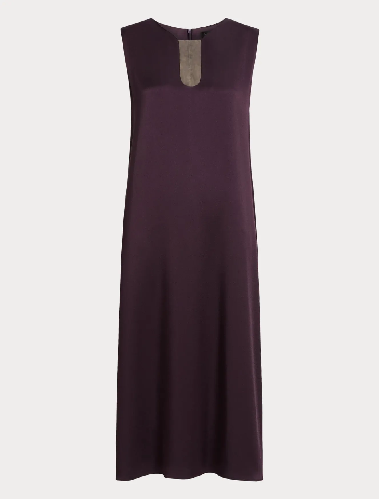 Langes Kleid aus Crêpe mit raffiniertem Charme, rundem Ausschnitt und Tülleinsatz. Die langen Ärmel lassen sich unschwer von einem Schneider anbringen.Das Kleidungsstück ist Teil der Kollektion Elegante.