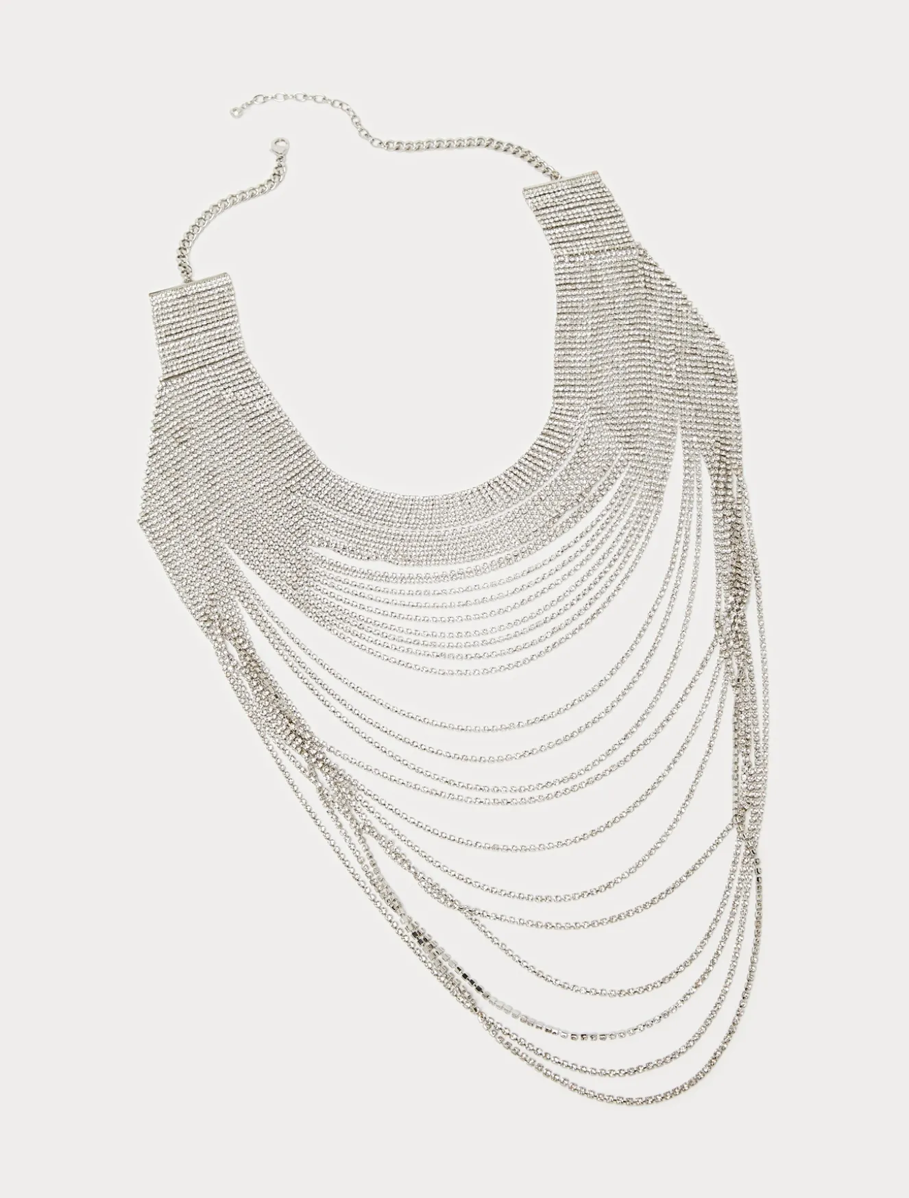 Diese Halskette aus mehreren Fäden mit einer Strasskette mit Farbverlauf besticht durch ihren malerischen Charme. Sie wird das Herzstück Ihrer glamourösesten Looks sein.