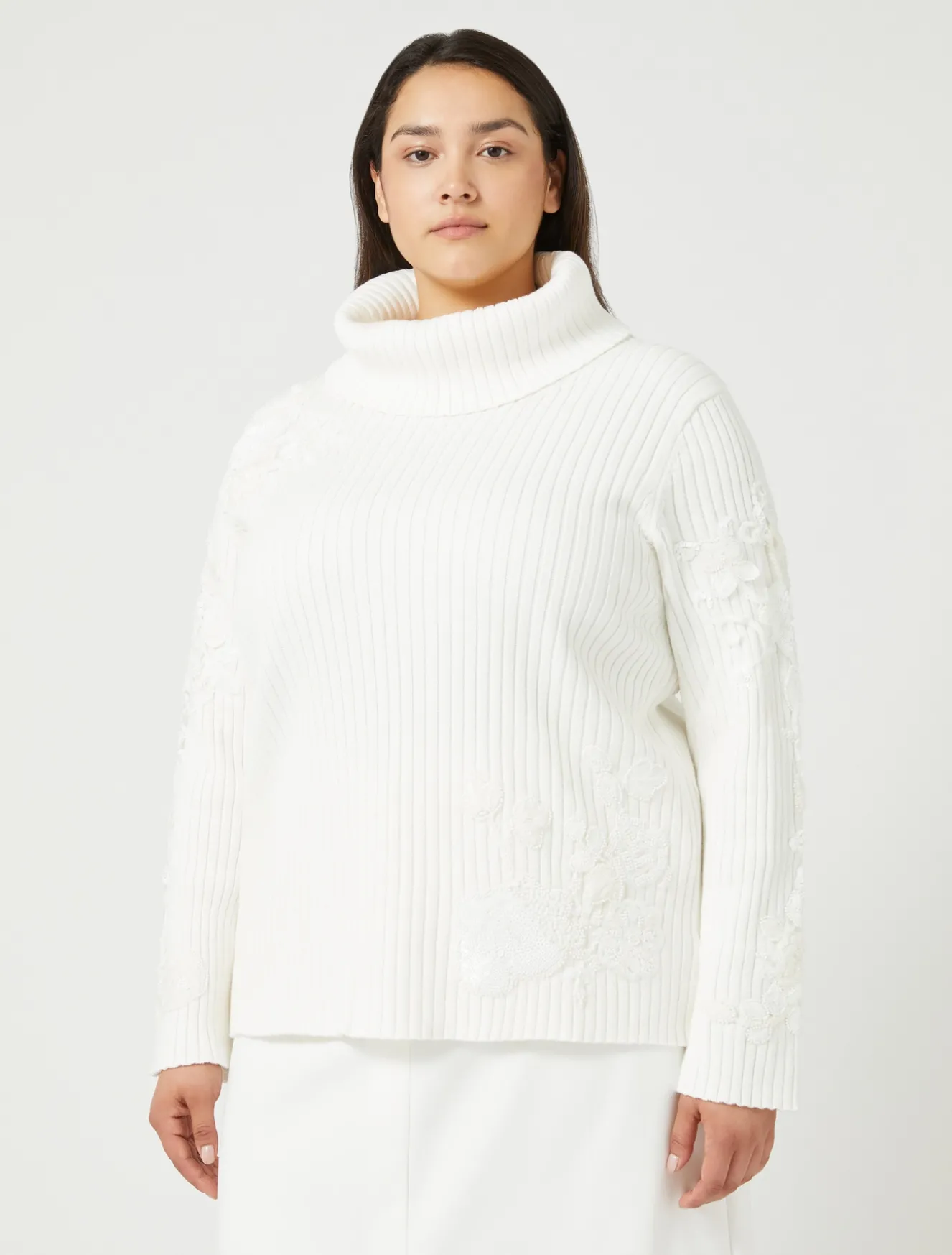 Mit Tüll-Applikationen bestickter Rippstrickpullover aus reiner Baumwolle. Perfekt für einen besonderen Anlass.Dieses Modell gehört zur Hauptkollektion von Marina Rinaldi.