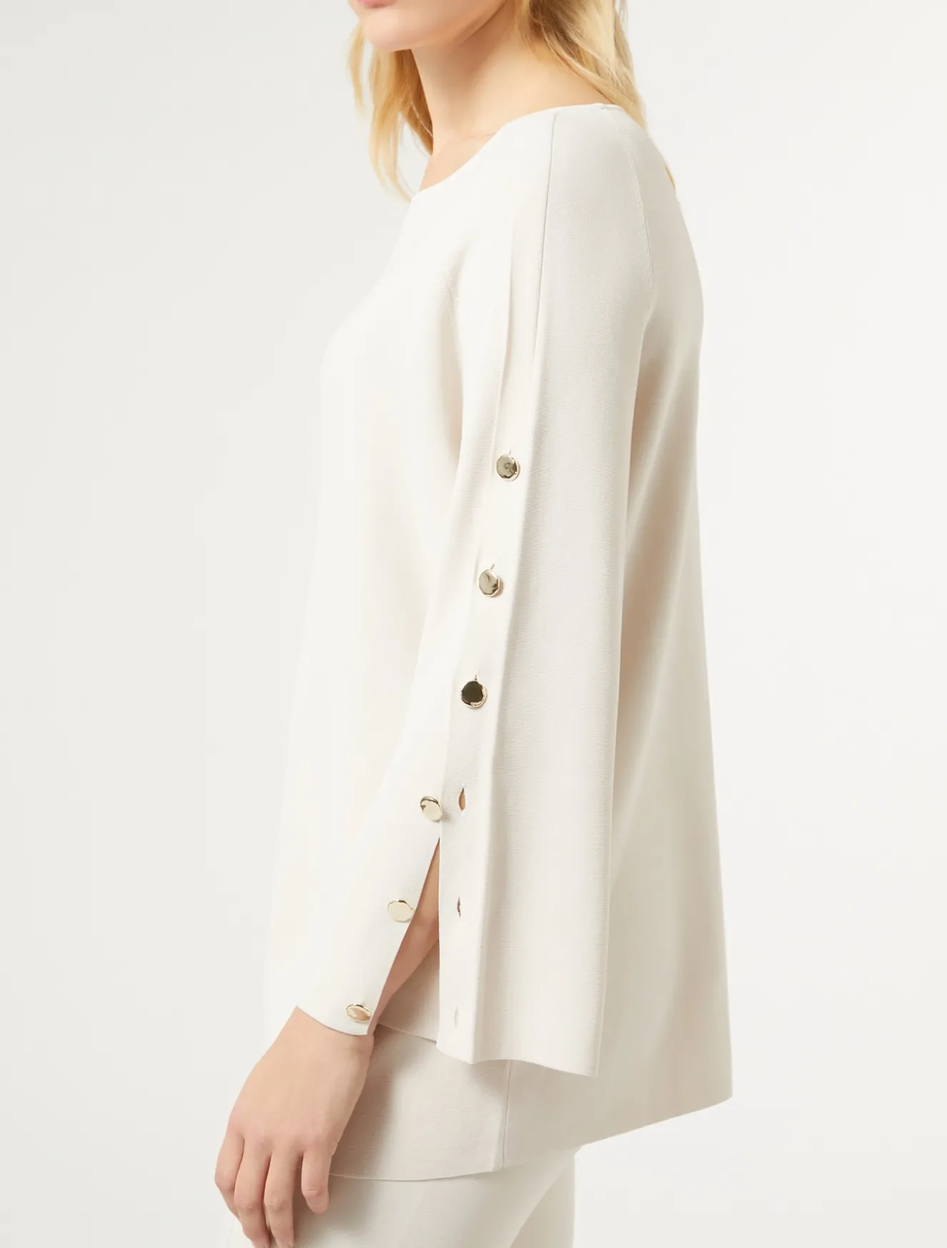 Raffinierter Pullover aus blickdichtem Comfort-Viskosestoff mit tiefen Ärmelausschnitten und Schmuckknöpfen. Wertet augenblicklich den Stil auf.Dieses Modell gehört zur Hauptkollektion von Marina Rinaldi.