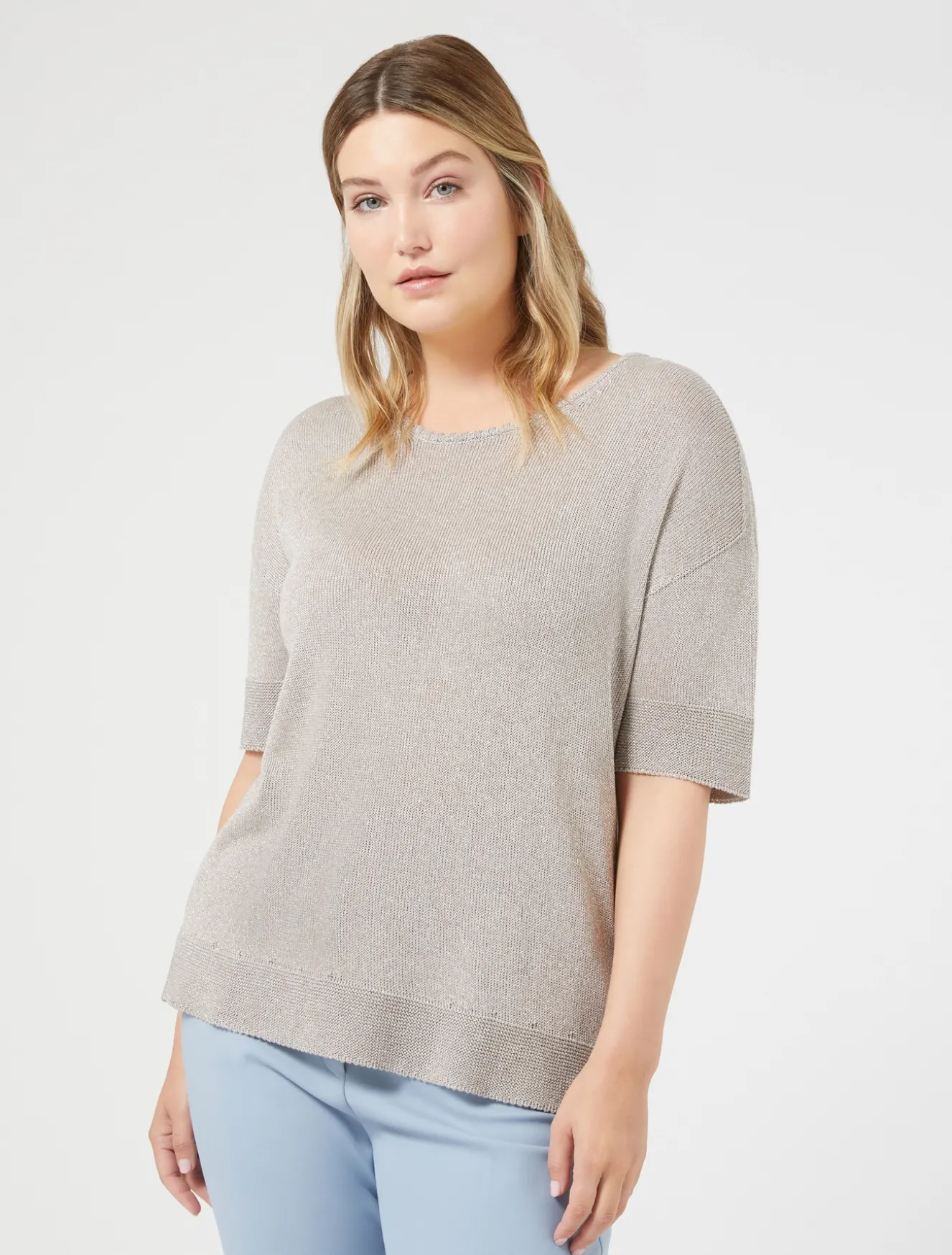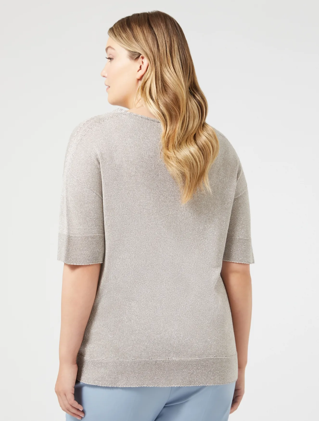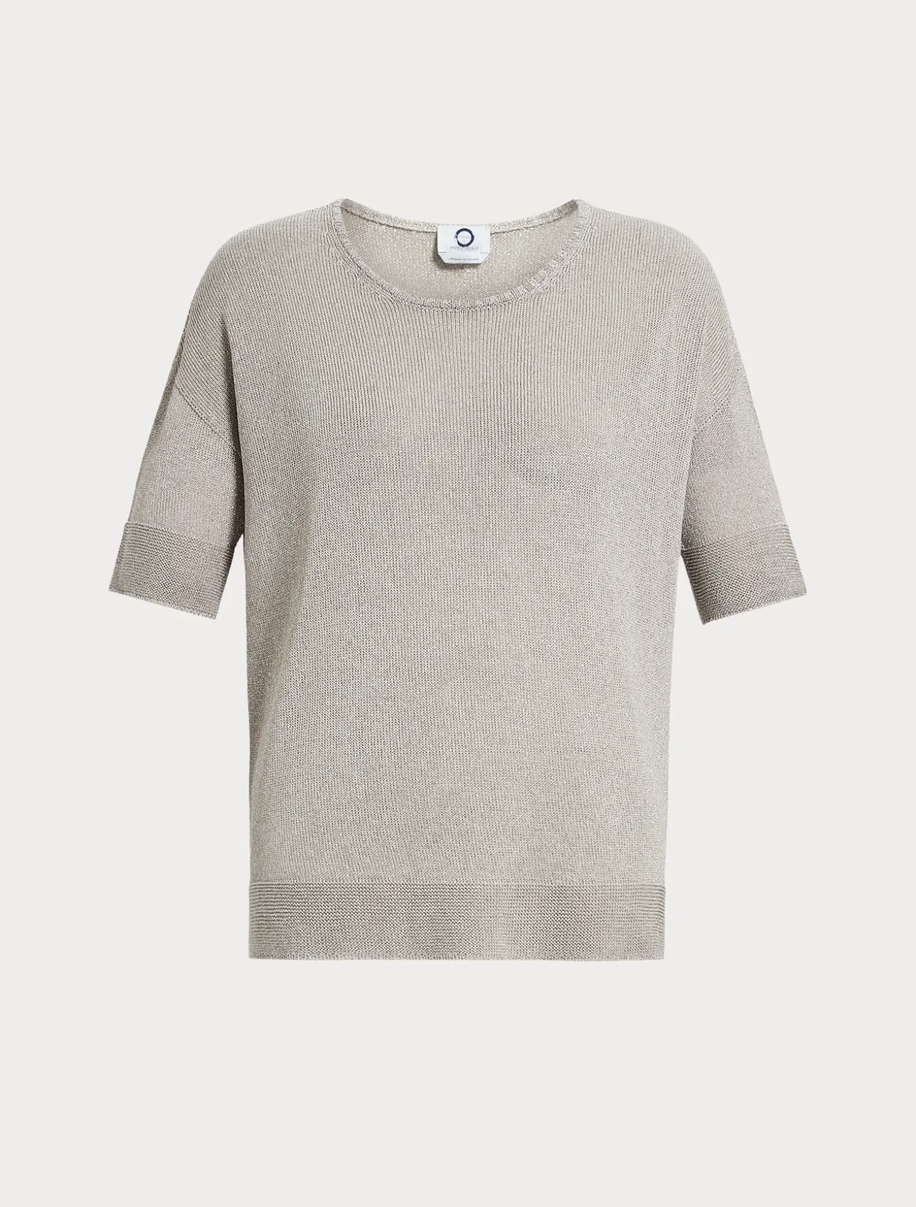 Dieser schmal gehaltene Pullover ist aus Lurex-Viskosegarn gefertigt und verfügt über einen Rundhalskragen in Rippstrick. Seine glamouröse Optik sorgt für edle Outfits.Das Kleidungsstück ist Teil der Kollektion „Voyage“.