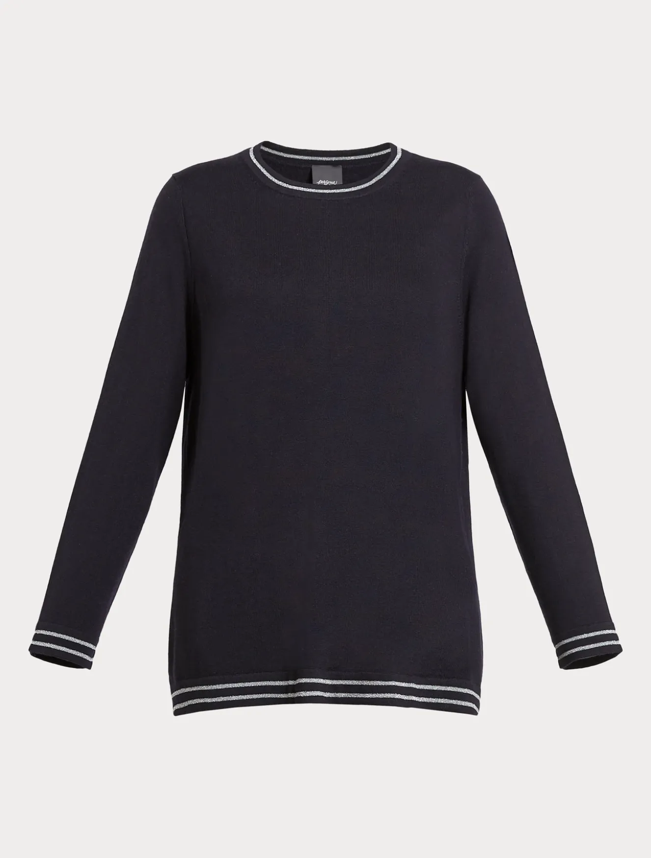 Körpernaher Pullover aus Schurwolle mit Rundhalskragen, langen Ärmeln und Seitenschlitzen. Lurex-Details für einen glanzvollen Look.Das Kleidungsstück ist Teil der Kollektion Persona by Marina Rinaldi.– Schurwolle– Gerader Schnitt– Rundhalsausschnitt– Lange Ärmel– Details aus Lurex