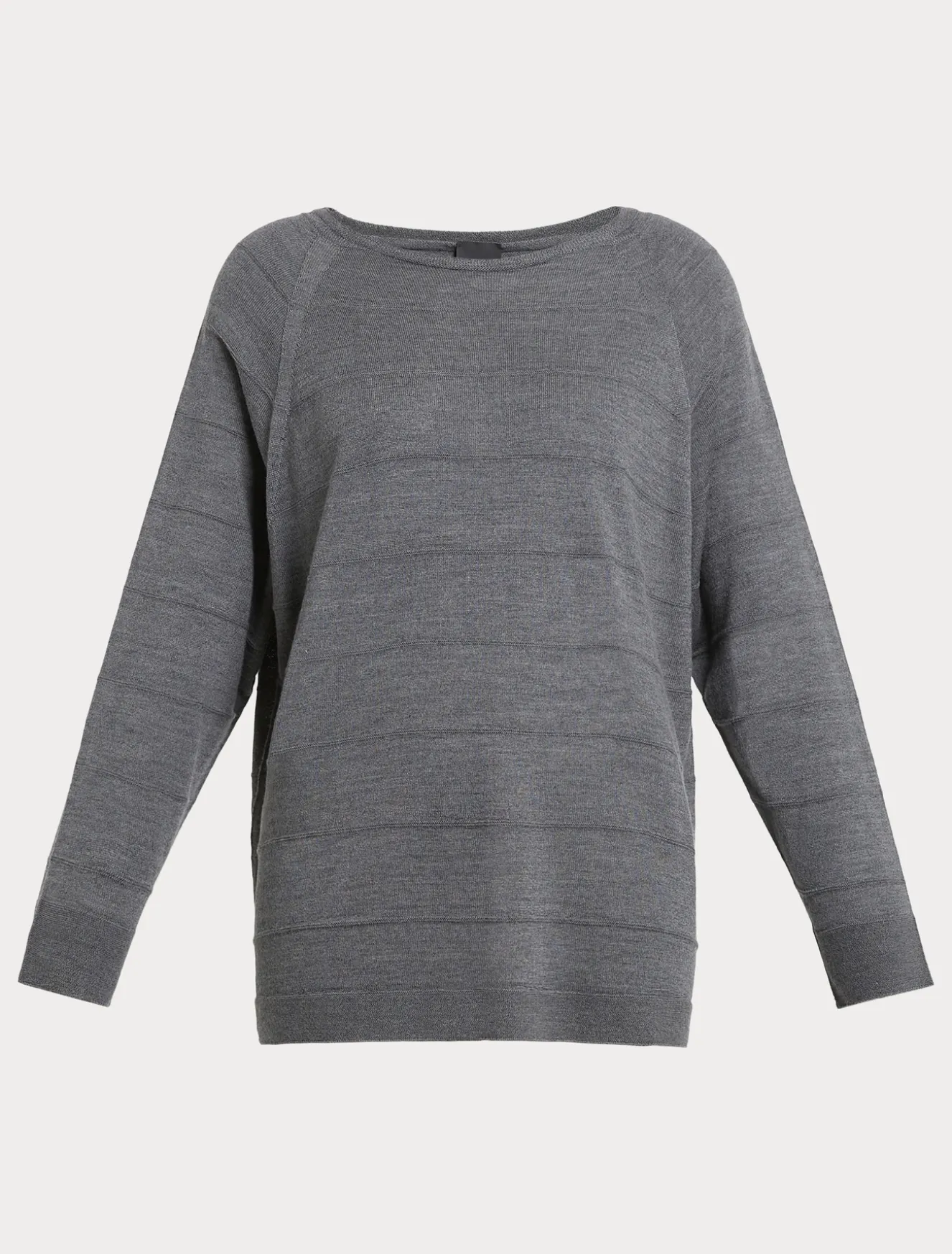Pullover aus Wollmischgewebe in Linksstrick- auf Glattstrick-Verarbeitung, die breite Streifen erzeugt, mit Abschlüssen in Linksstrick-Verarbeitung. Passt am besten zu Jeans oder Ihrer Lieblingshose. Das Kleidungsstück ist Teil der Kollektion Persona by Marina Rinaldi.– Wollgemisch– Oversize-Passform– U-Boot-Ausschnitt– Lange Raglanärmel