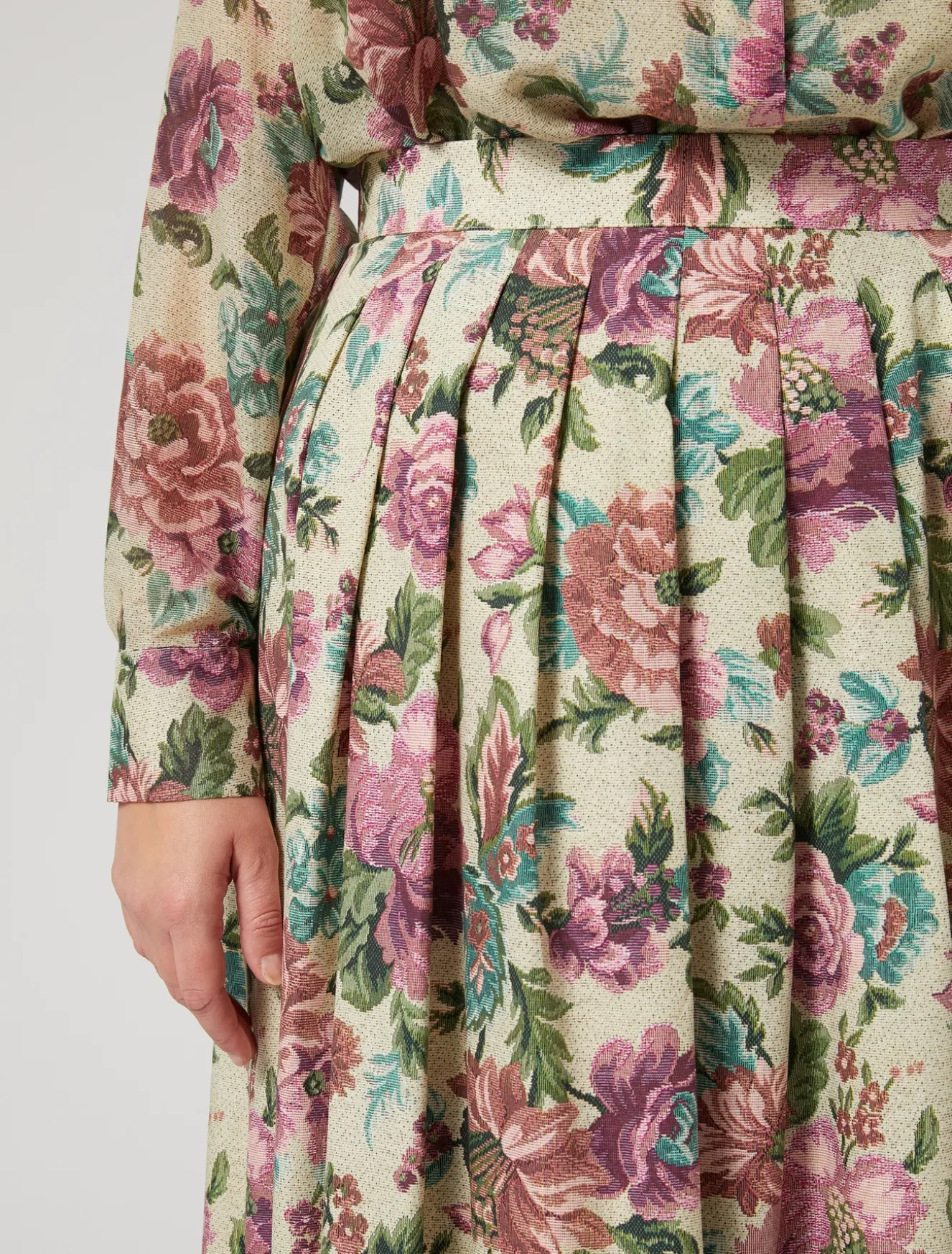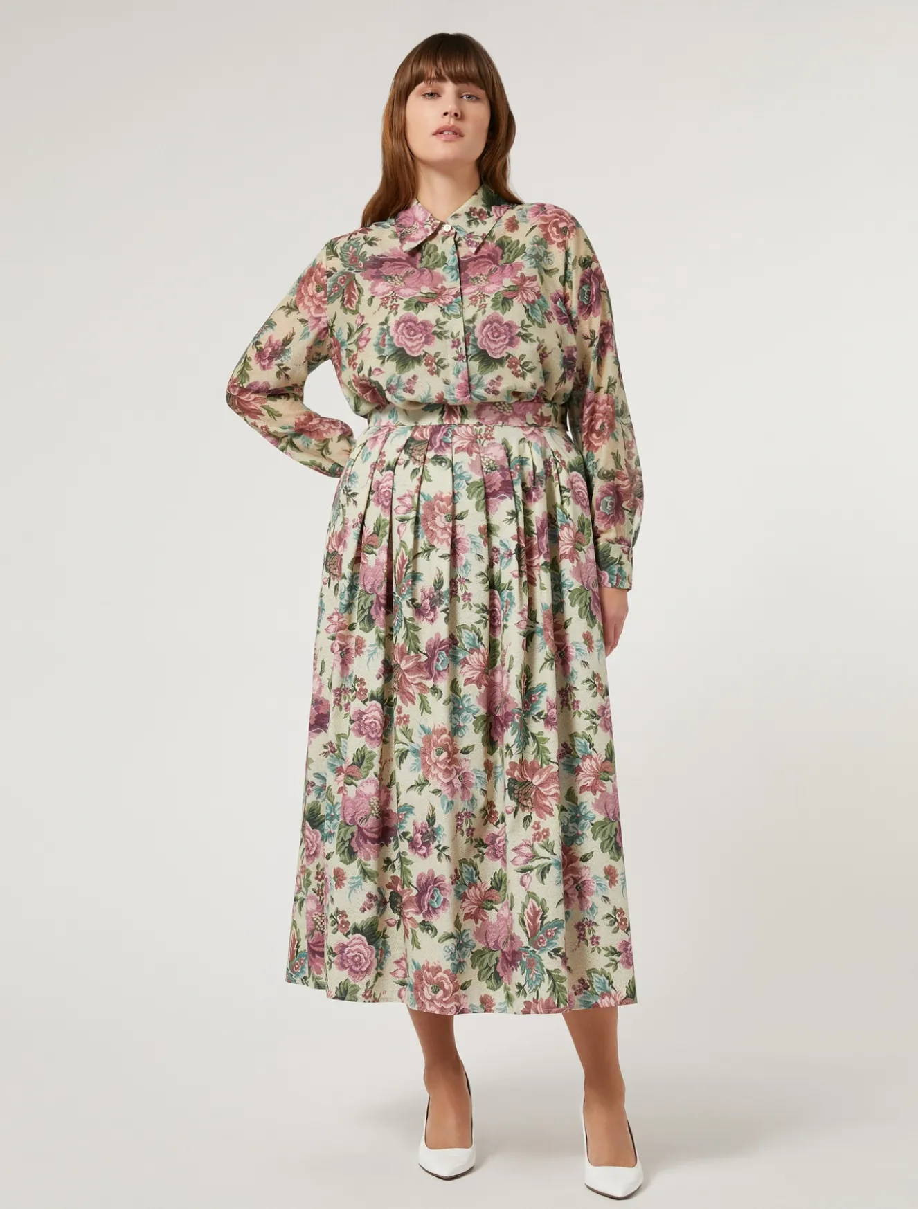 Der mittellange Rock ist aus reiner Baumwollpopeline gefertigt und mit einem einzigartigen Print mit Falten in der Mitte versehen. Der perfekte feminine Rock, der zu einer Vielzahl von Outfits passt.Dieses Modell gehört zur Hauptkollektion von Marina Rinaldi.