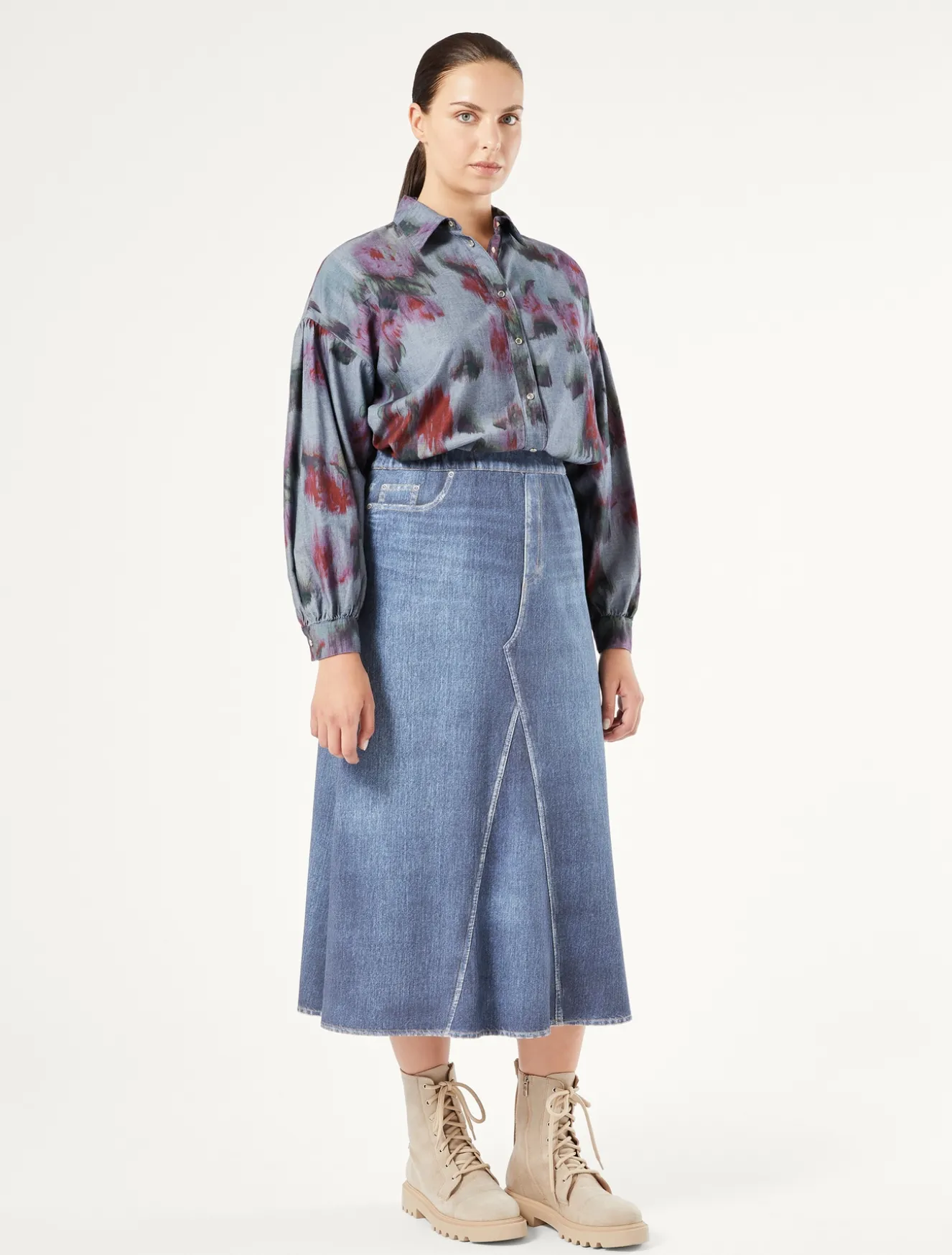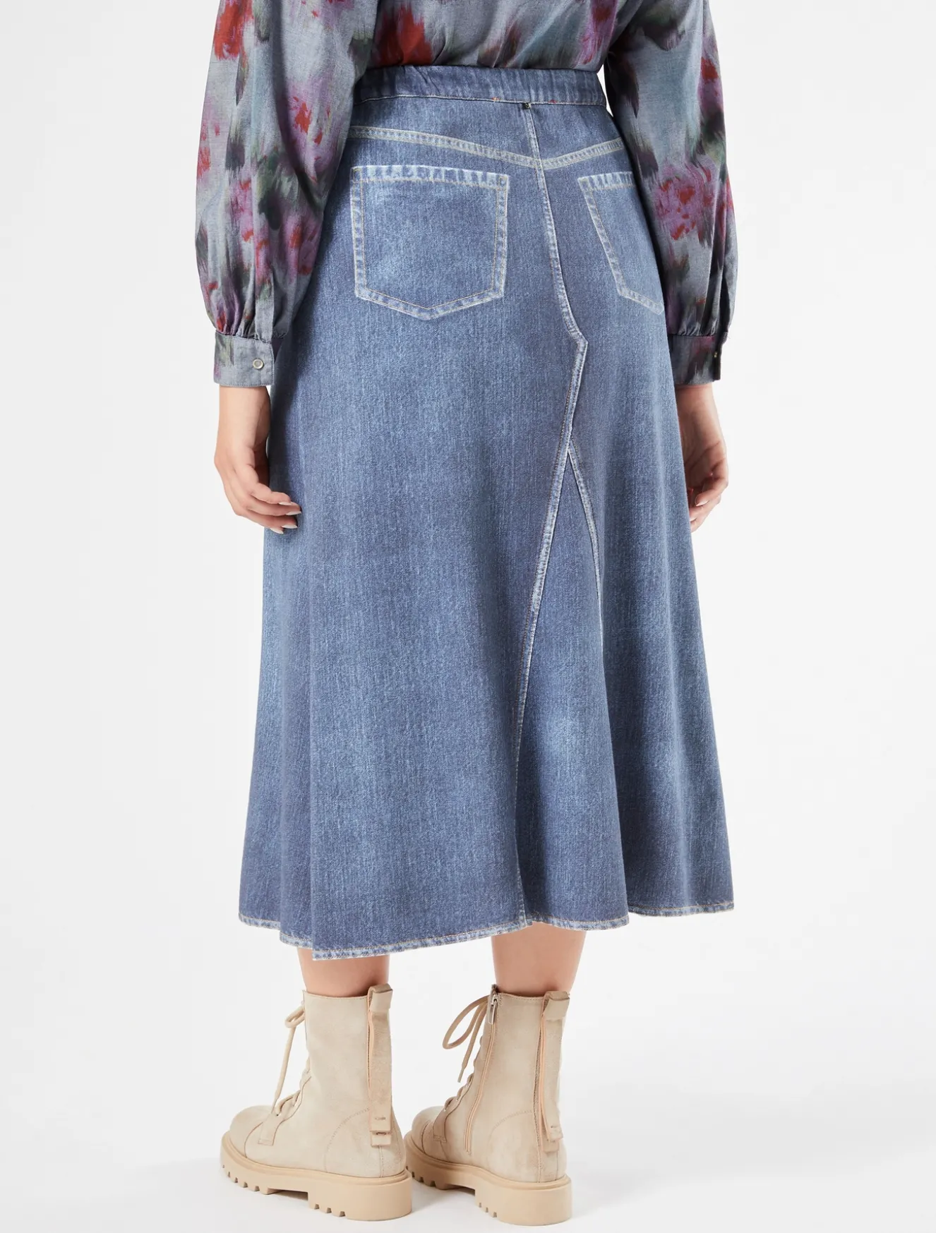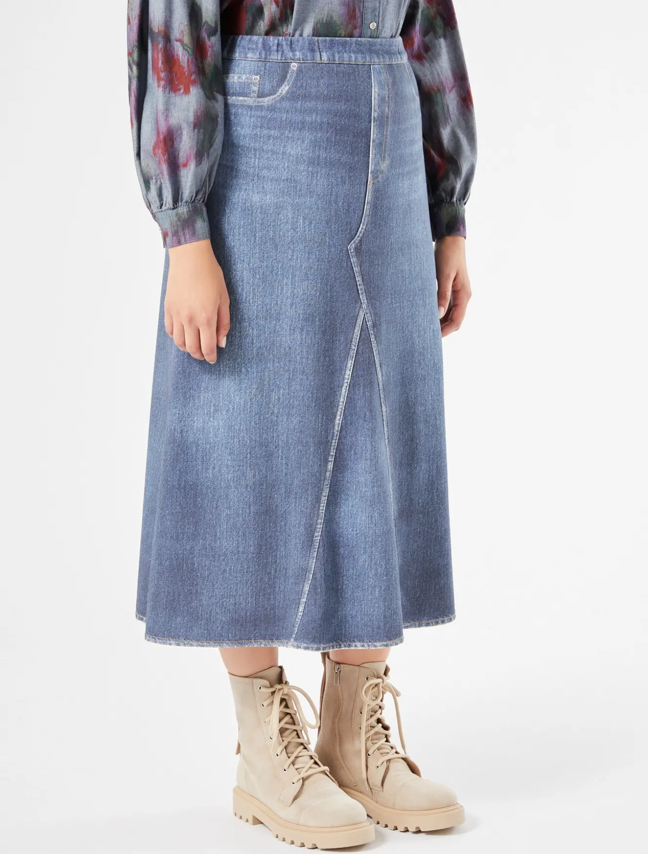 Bedruckten Rock aus Sweatjersey mit Steppnähten und Denim-Details in Trompe-l’oeil-Optik. Einfach zu tragen und zu kombinieren, für einen aktuellen Look.Das Kleidungsstück ist Teil der Kollektion Marina Sport.