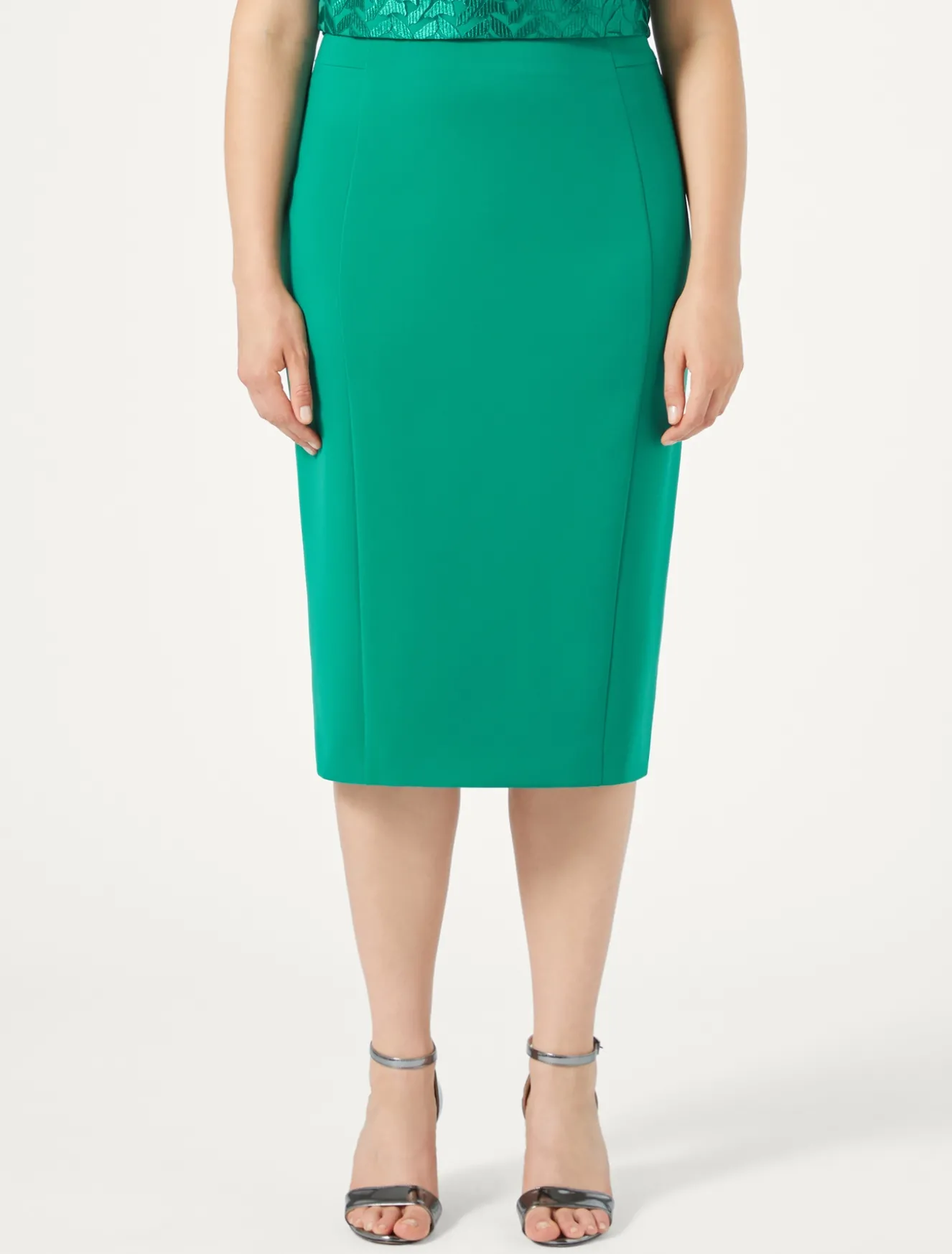 Rock aus Cady mit klarer Linienführung und vertikalen Abnähern für einen figurbetonten Schnitt. Ein vielseitiges Kleidungstück, das sich zu mehreren Anlässen tragen lässt. Mit Reißverschluss hinten für einen sofortigen Sitz.Das Kleidungsstück ist Teil der Kollektion Persona by Marina Rinaldi.