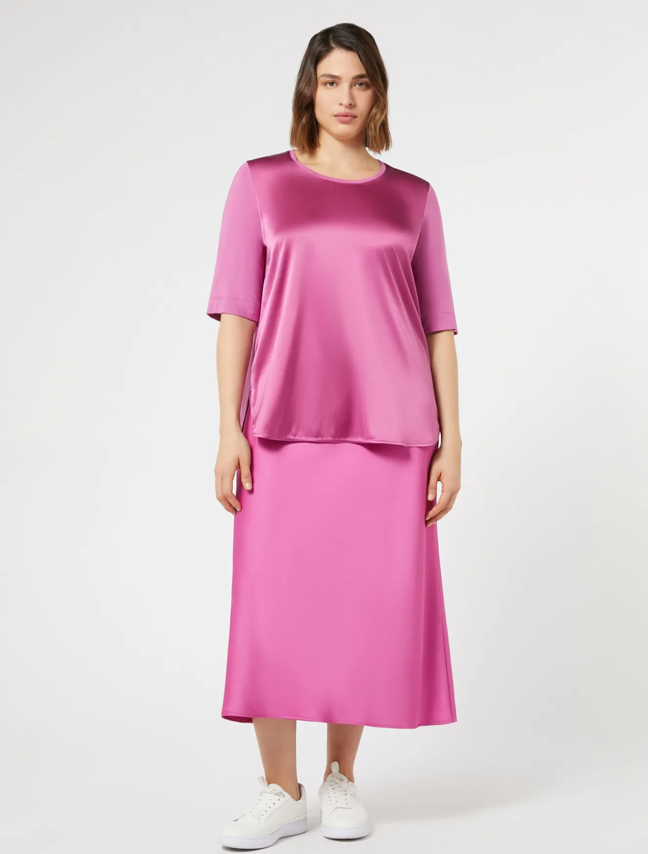 Dieser Longuette-Rock mit elastischem Bund ist aus fließendem Satin gefertigt. Dieses schlichte und zeitlose Modell ist einfach zu kombinieren, und besonders gut natürlich mit der dazu passenden Hemdbluse.Das Kleidungsstück ist Teil der Kollektion Voyage Relax.
