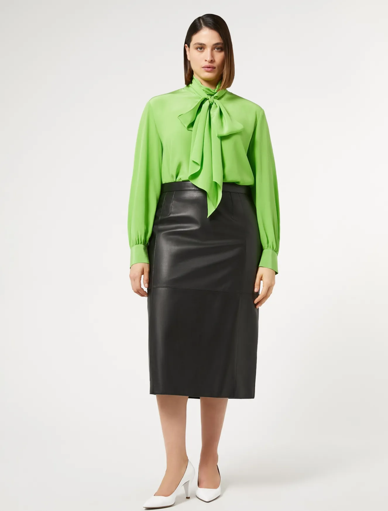 Dieser Bleistiftrock aus Leder mit ergonomischen Abnähern auf Vorder- und Rückseite verleiht deinem Outfit sofort einen Hauch von Eleganz. Perfekte Basis für aktuelle Looks.Dieses Modell gehört zur Hauptkollektion von Marina Rinaldi.