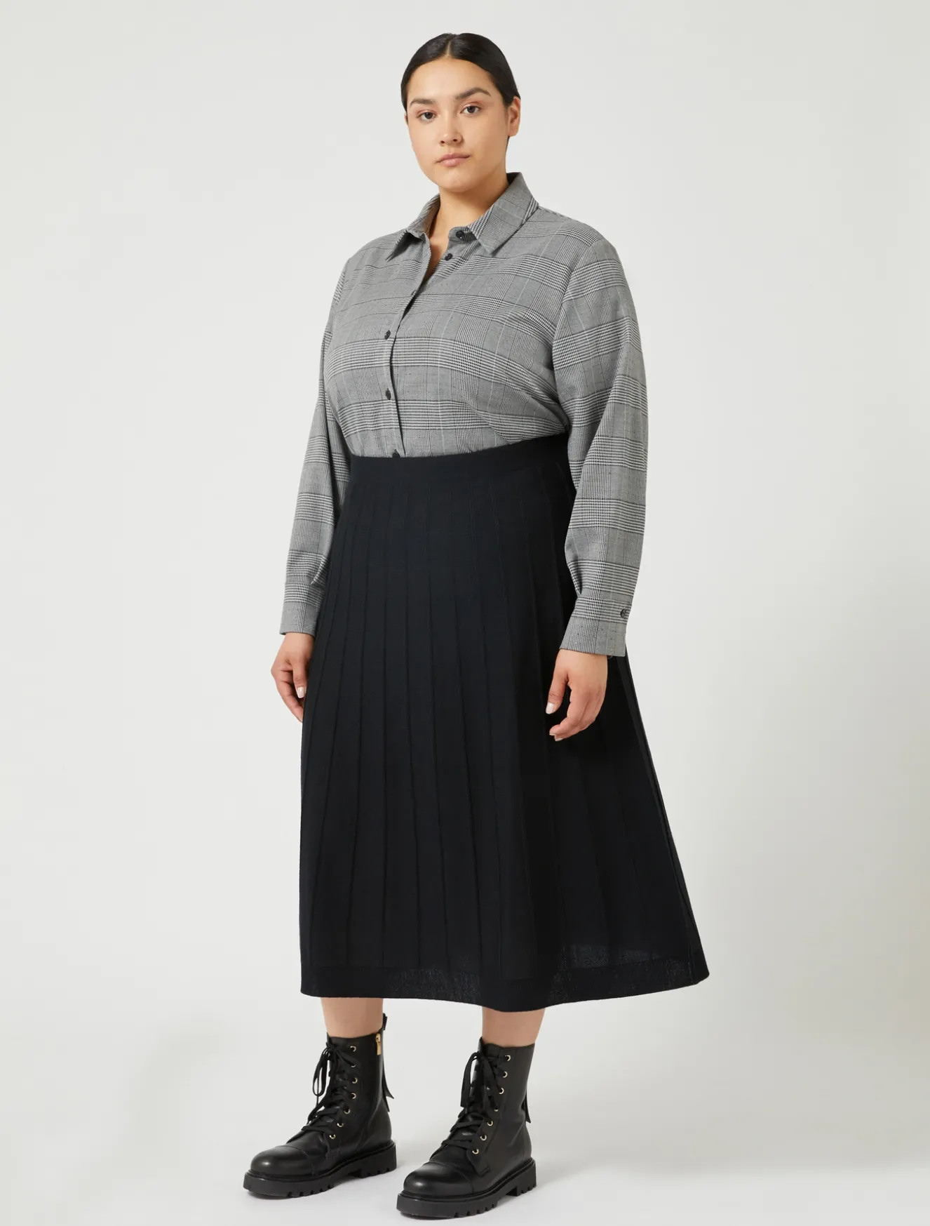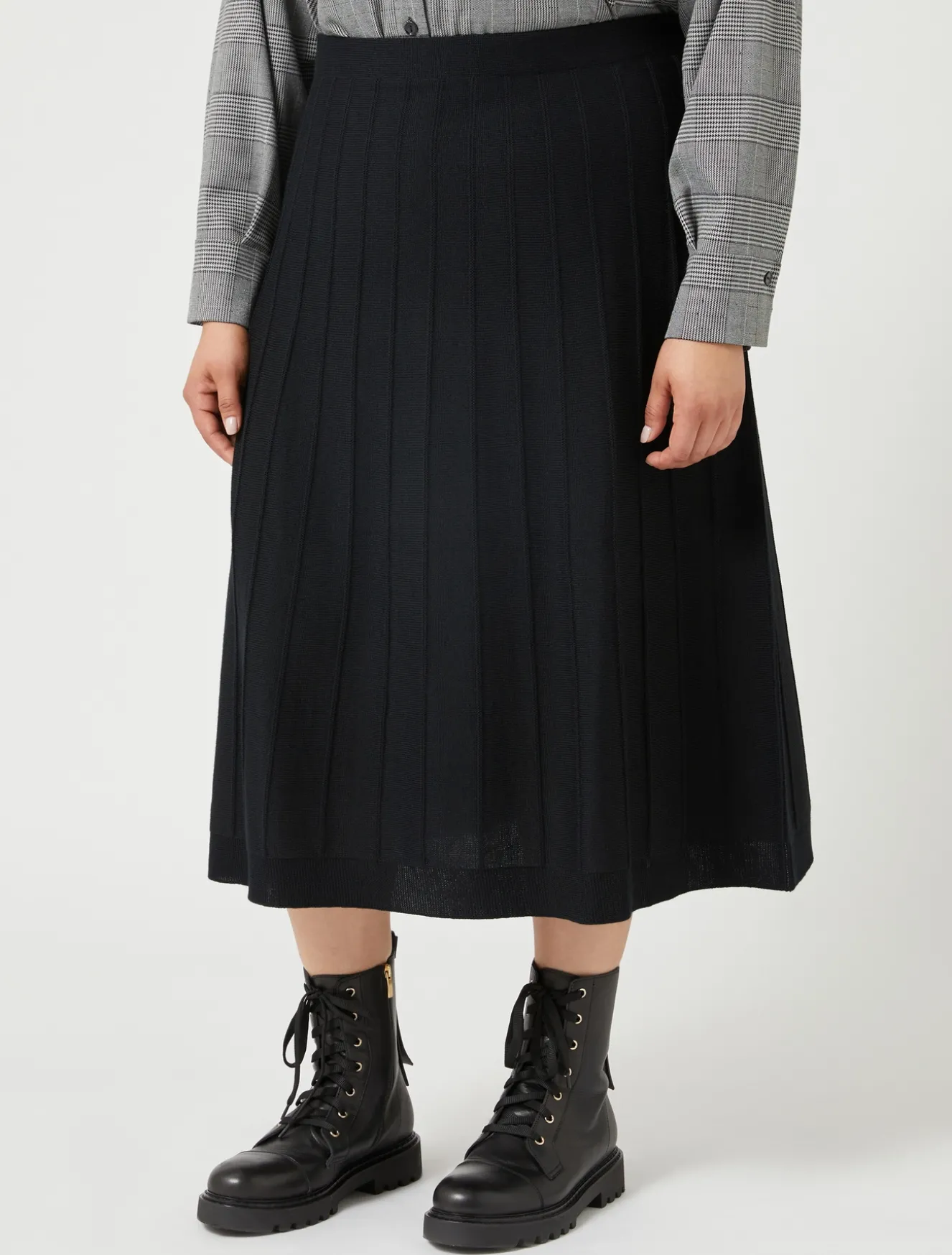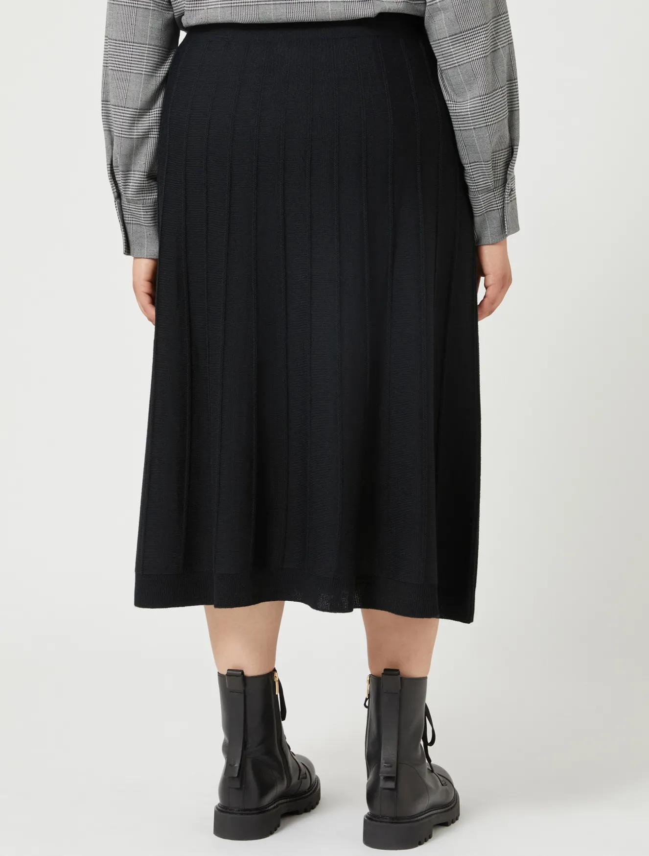 Rock aus Merinowollgemisch in Flachstrick-Verarbeitung und einem Linksstrick-Muster, das vertikale Streifen erzeugt. Elegante und bequeme ausgestellte Silhouette.Das Kleidungsstück ist Teil der Kollektion Persona by Marina Rinaldi.– Mouliné-Wollgemisch– Ausgestellter Schnitt– Glattstrick-Finish– Linksstrick-Verarbeitung– Elastikeinsatz am Bund