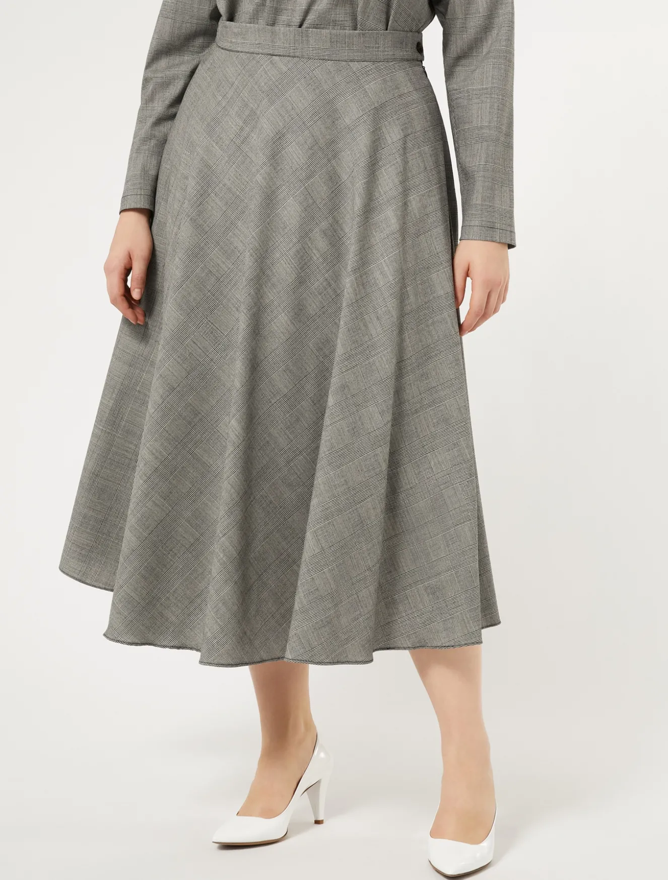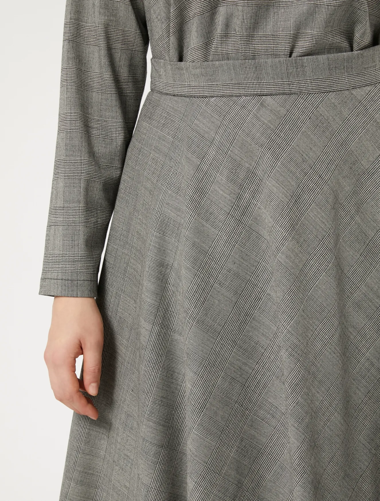 Weicher und bequemer Glencheck-Rock aus monoelastischem diagonal verarbeitetem Woll-Foulé-Canvas. Gut mit der passenden Jacke kombinierbar.Dieses Modell gehört zur Hauptkollektion von Marina Rinaldi.