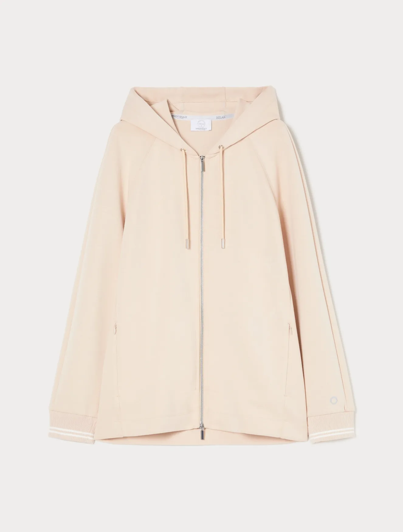 Vielseitig kombinierbares, sportiv anmutendes Sweatshirt aus doppeltem Baumwollgewebe mit asymmetrischem Saum. Lässt sich wunderbar mit der dazu passenden Hose zu einem zeitgemäßen Freizeit-Outfit kombinieren.