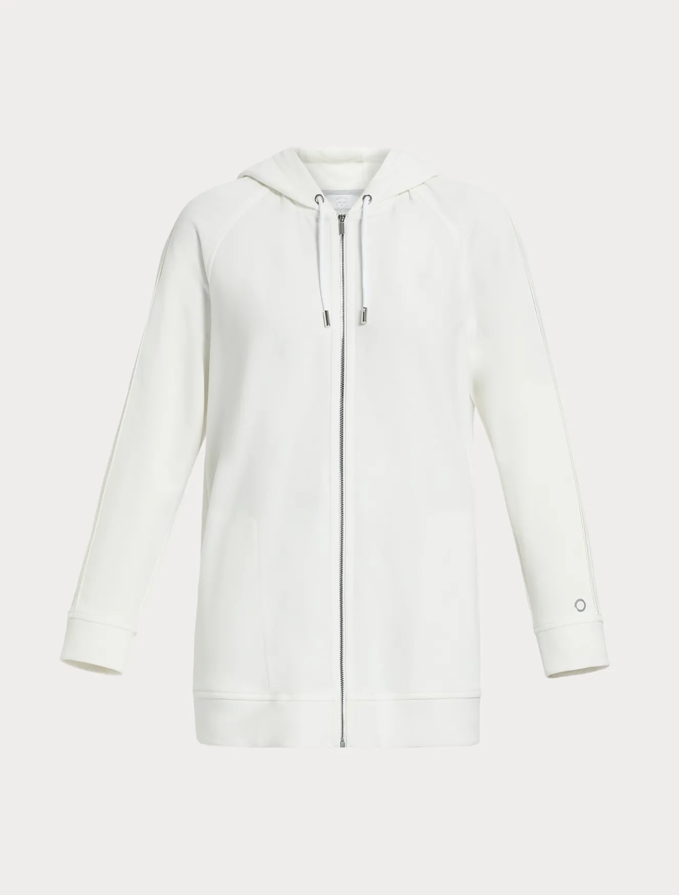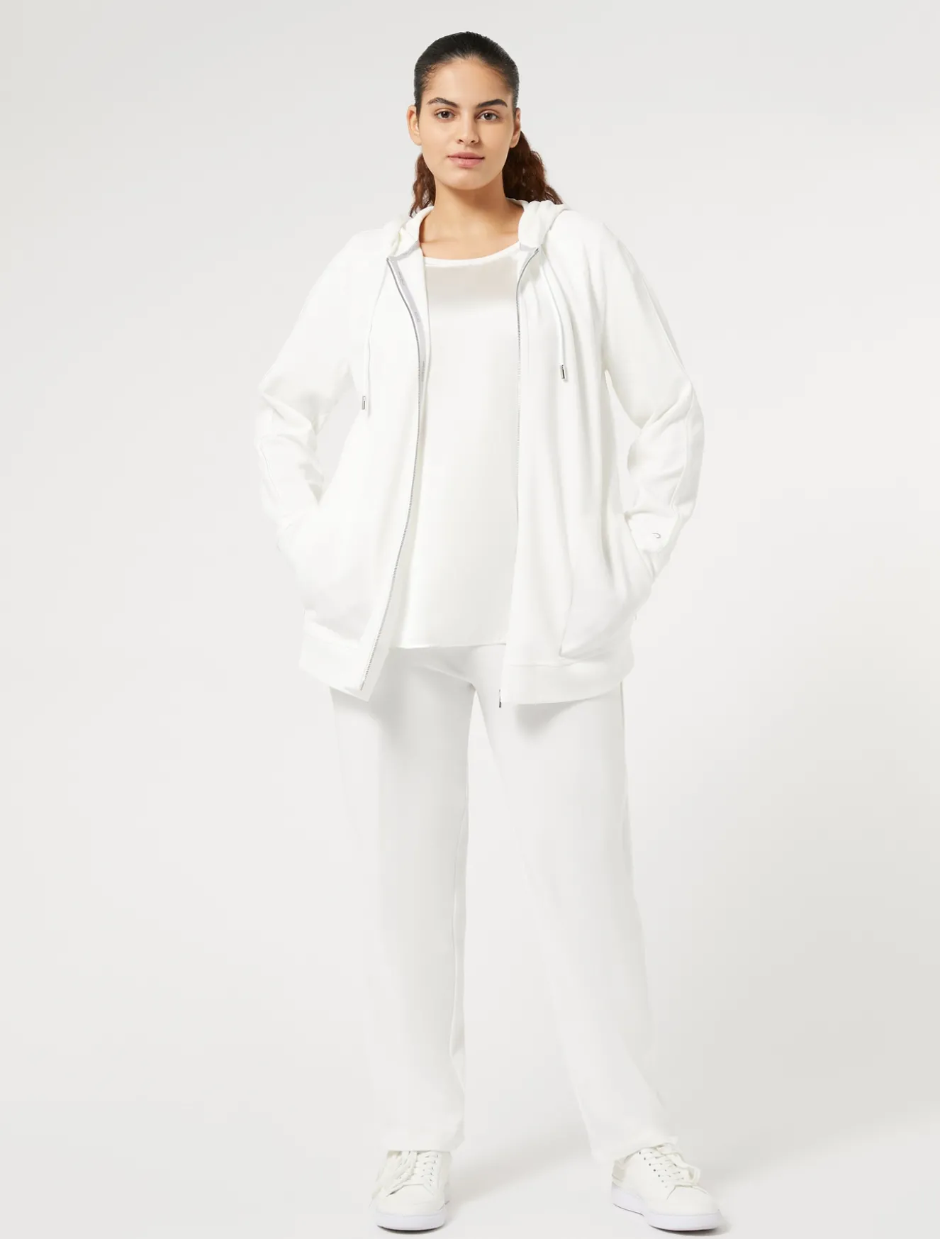 Der Zipp-Hoodie ist aus Baumwoll-Nylon-Interlock-Jersey mit glänzenden Paspeln ausgestattet. Warum nicht gleich dazu die passende Hose tragen?Das Kleidungsstück ist Teil der Kollektion Voyage Relax.