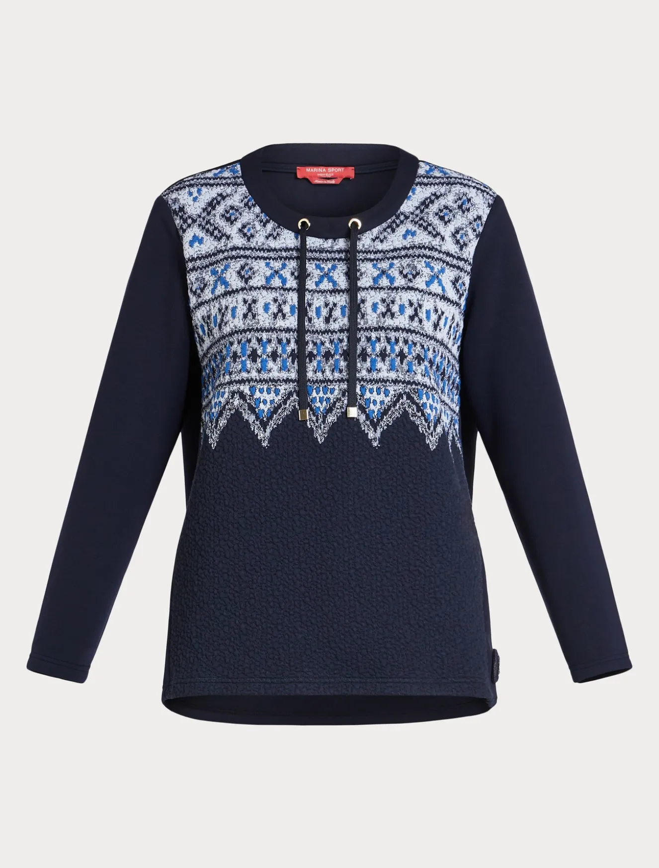 Sweatshirt aus Scuba-Jersey mit Viskosemischung mit einem Einsatz aus Matelassé-Jersey und nordisch inspiriertem Disegno.. Perfekt geeignet, um deine Freizeitlooks aufzuwerten.Das Kleidungsstück ist Teil der Kollektion Marina Sport.
