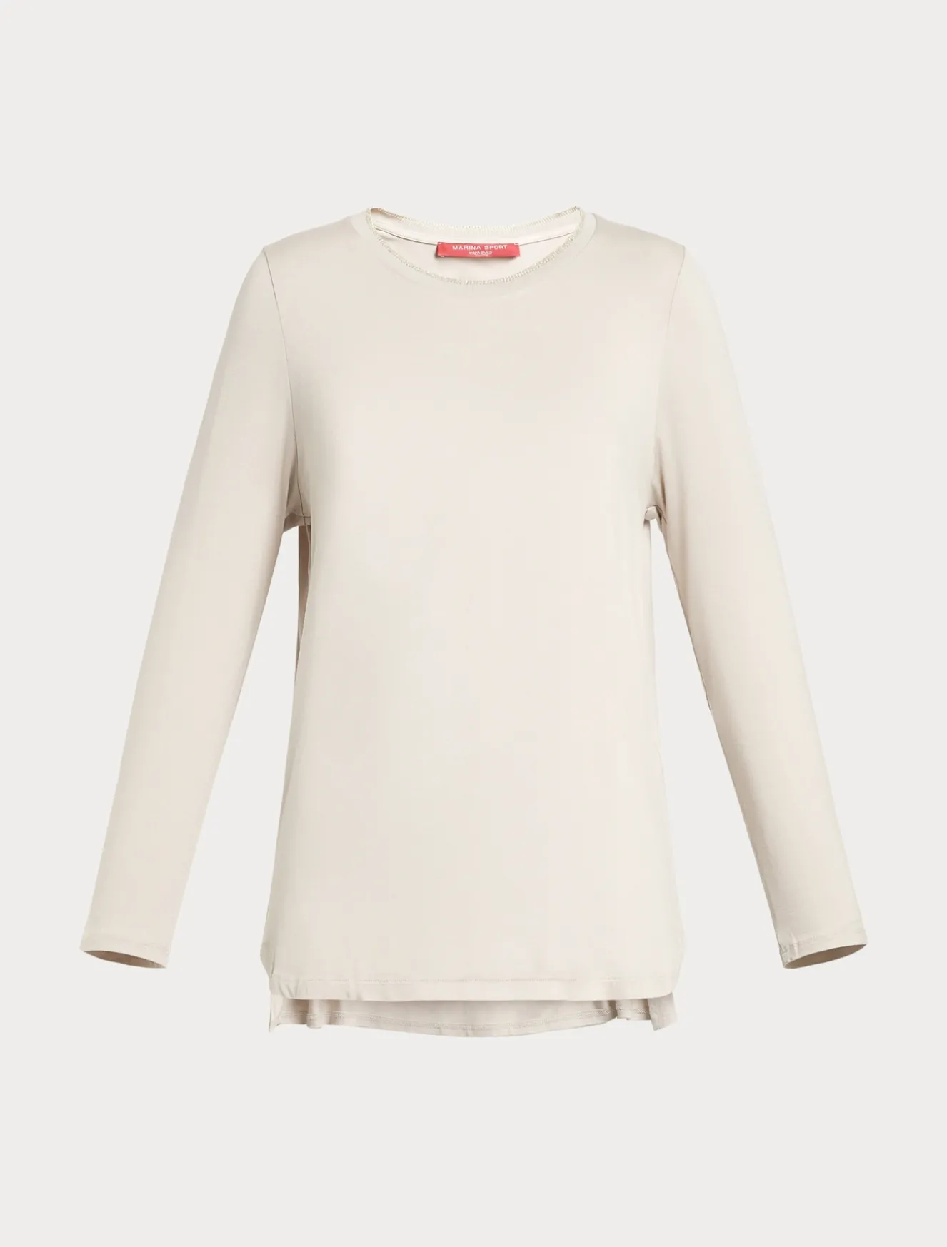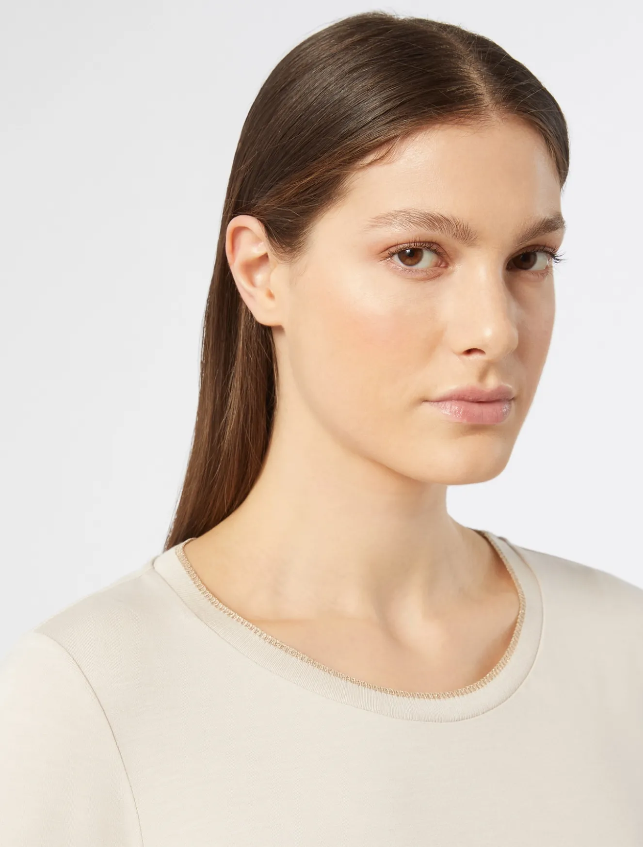 Dieses T-Shirt aus Viskose-Stretch-Jersey mit einem Rippstrickkragen mit Lurexabschlüssen lässt sich einfach kombinieren. Perfekte Basis für deine Layering-Looks der Saison.Das Kleidungsstück ist Teil der Kollektion Marina Sport.