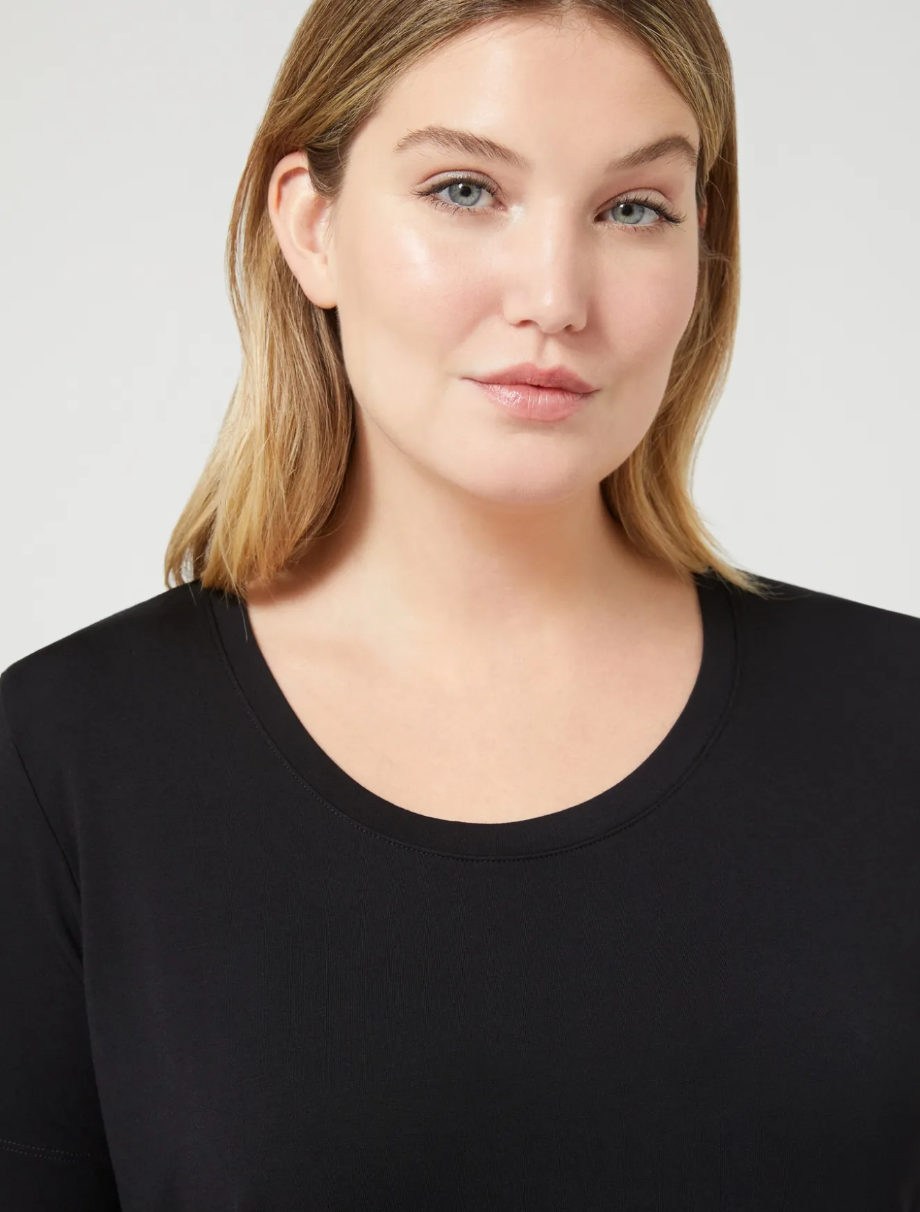 Schlichtes und bequemes gerade geschnittenes T-Shirt aus Viskose-Stretch-Jersey. Ein Kleidungsstück mit zeitgemäßem Charakter, das Ihre Alltagslooks perfekt abrundet. Dieses Kleidungsstück ist Teil der Kollektion Easy by Marina Rinaldi.