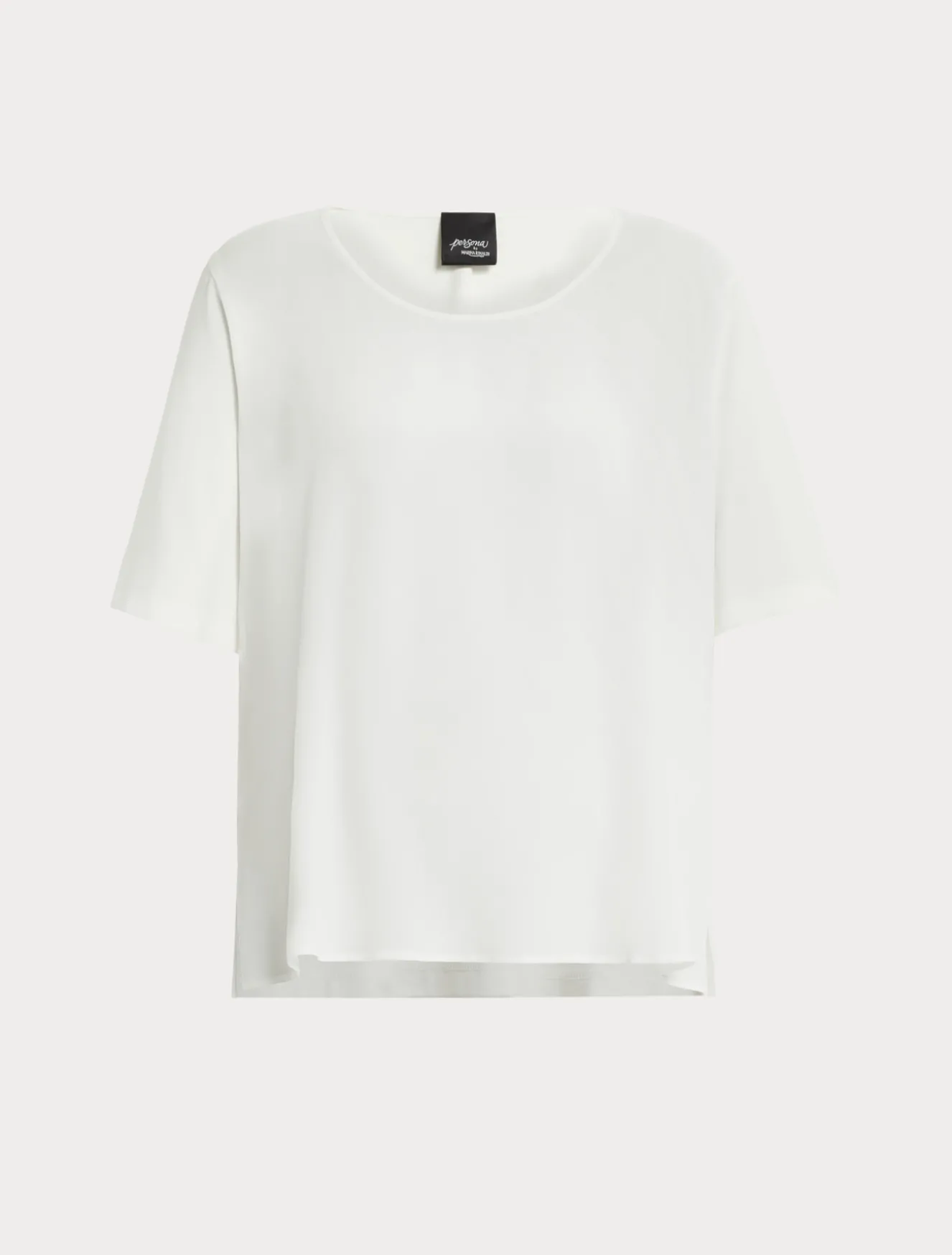 Dieses kurzärmlige T-Shirt aus Viskose-Jersey mit raffiniertem Touch besticht durch seinen Rundhalsausschnitt und die Vorderseite aus einem Seidengemisch, das Alltagsoutfits elegant ergänzt.Das Kleidungsstück ist Teil der Kollektion Persona by Marina Rinaldi.