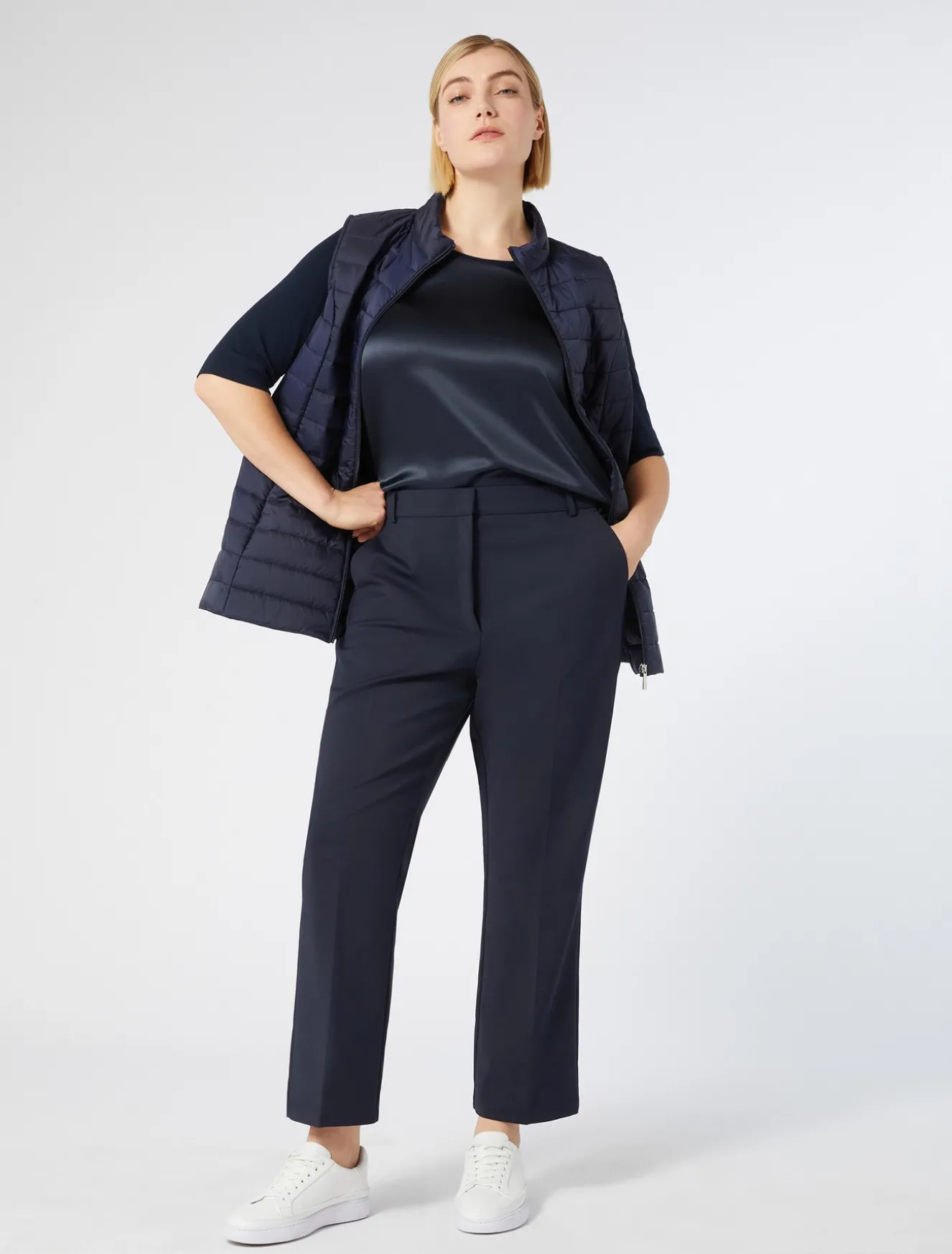 T-Shirt aus Viskose-Jersey und elastischem Seidensatin vorne. Schlichte Eleganz, die sich problemlos mit Ihrer Garderobe kombinieren lässt.